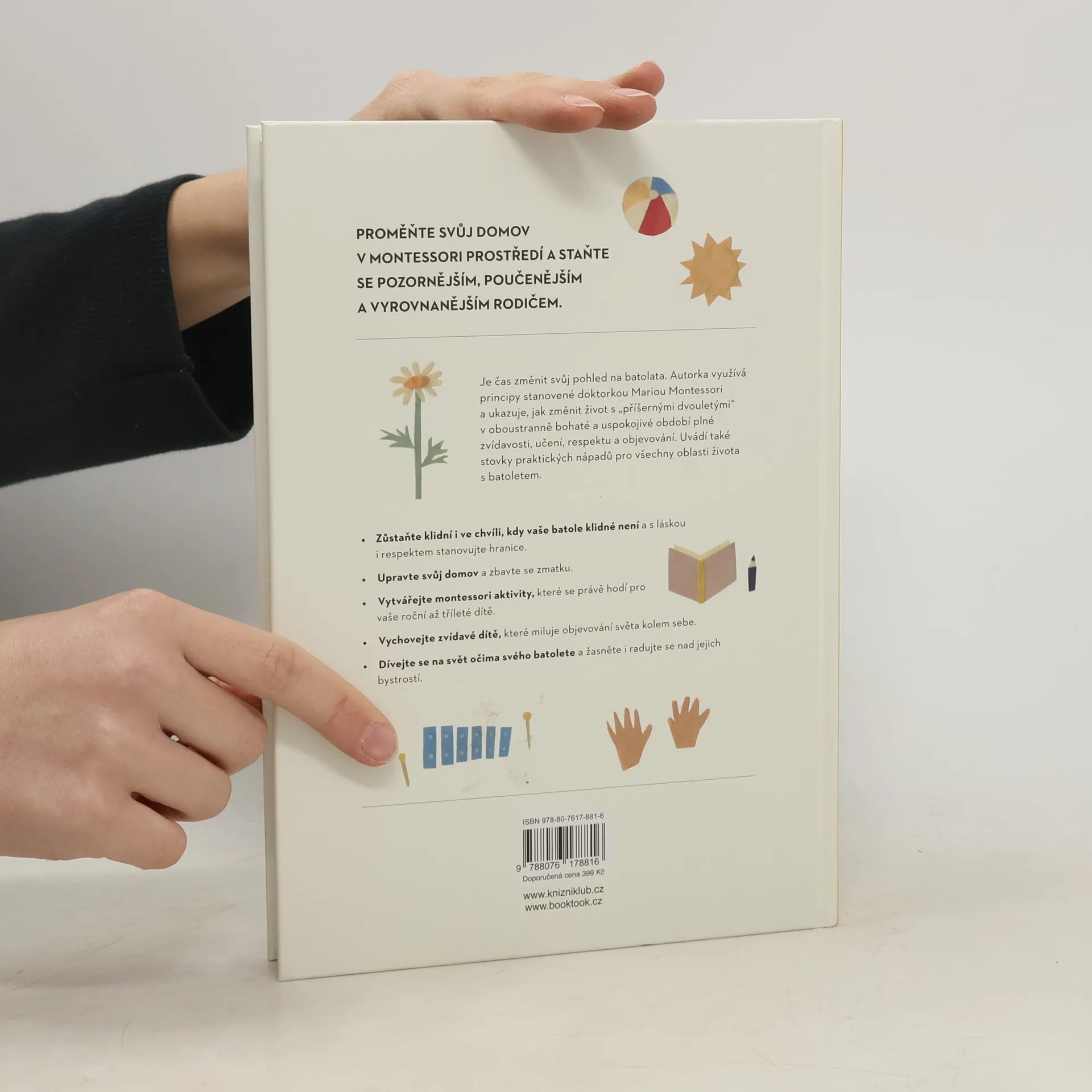 Srozumitelná a komplexní příručka k výchově batolat podle Montessori. Chcete najít způsob, jak si výchovu batolete víc užívat? Povzbuzovat svoje dítě k tomu, aby se rádo učilo? Dosáhnout toho, že dítě spolupracuje, aniž byste na něj křičeli, nebo se opakovali? Pak je tahle kniha pro vás to pravé. Montessori přístup vede děti k tomu, aby samy objevovaly svět vlastníma rukama a přebíraly odpovědnost, když je potřeba, zatímco dospělí fungují jako vedení. Tato kniha nabízí jednoduché, praktické rady, jak uplatnit zásady učení Montessori do každodenního života s dítětem ve věku do tří let.