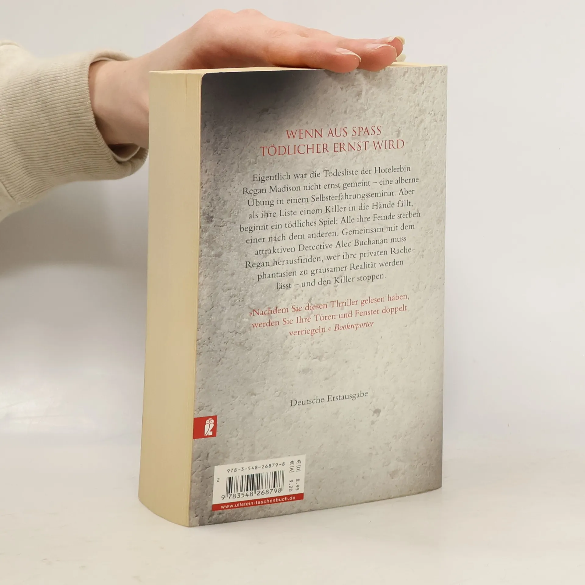 Eigentlich war die Todesliste der Hotelerbin Regan Madison nicht ernstgemeint – eine alberne Übung in einem Selbsterfahrungs-seminar. Aber als ihre Liste einem Killer in die Hände fällt, beginnt ein tödliches Spiel: Alle ihre Feinde sterben einer nach dem anderen. Gemeinsam mit dem attraktiven Detective Alec Buchanan muss Regan herausfinden, wer ihre privaten Rachephantasien zu grausamer Realität werden lässt – und den Killer stoppen.