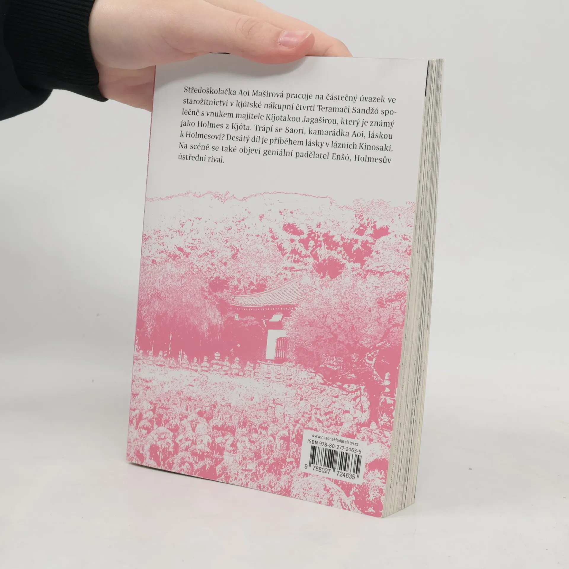 Středoškolačka Aoi Maširová pracuje na částečný úvazek ve starožitnictví v kjótské nákupní čtvrti Teramači Sandžó, společně s vnukem majitele, Kijotakou Jagaširou, který je známý jako Holmes z Kjóta. Trápí se Saori, kamarádka Aoi, láskou k Holmesovi!? Desátý díl je příběhem lásky v lázních Kinosaki. Na scéně se také objeví geniální padělatel Enšó, Holmesův ústřední rival.