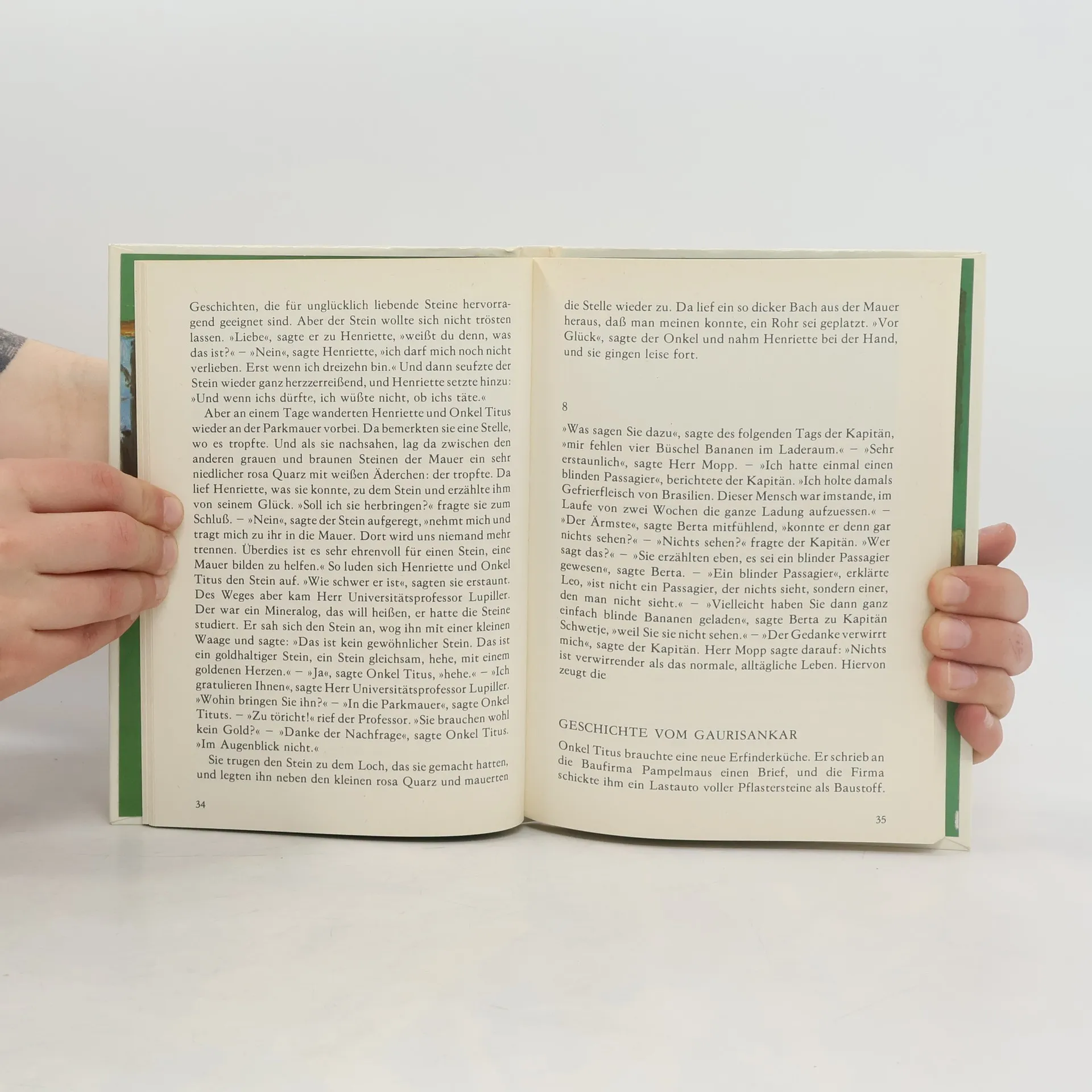 Henriette und Onkel Titus sind ein tolles Team, sie hat mehr Phantasie, er mehr Verstand,"aber jeder hat genug von beidem".Weil das so ist, erleben sie gemeinsam die abenteuerlichsten Dinge: sie bauen einen Schneemann, der ihre§Weihnachtspakete versteckt, befreien einen weinenden Stein von seinem Liebeskummer, erfinden eine Denkmaschine und fangen im Stadtpark einen mittelgroßen, hübschen Affen, der natürlich sprechen kann. Denn, so sagt einmal Herr Mopp alias Onkel Titus:"Nichts ist verwirrender als das normale, alltägliche Leben."Peter Hacks'Märchengeschichten von Henriette und Onkel Titus sind irgendwo zwischen Traum und Wirklichkeit angesiedelt und von einer verblüffenden Zeitlosigkeit.