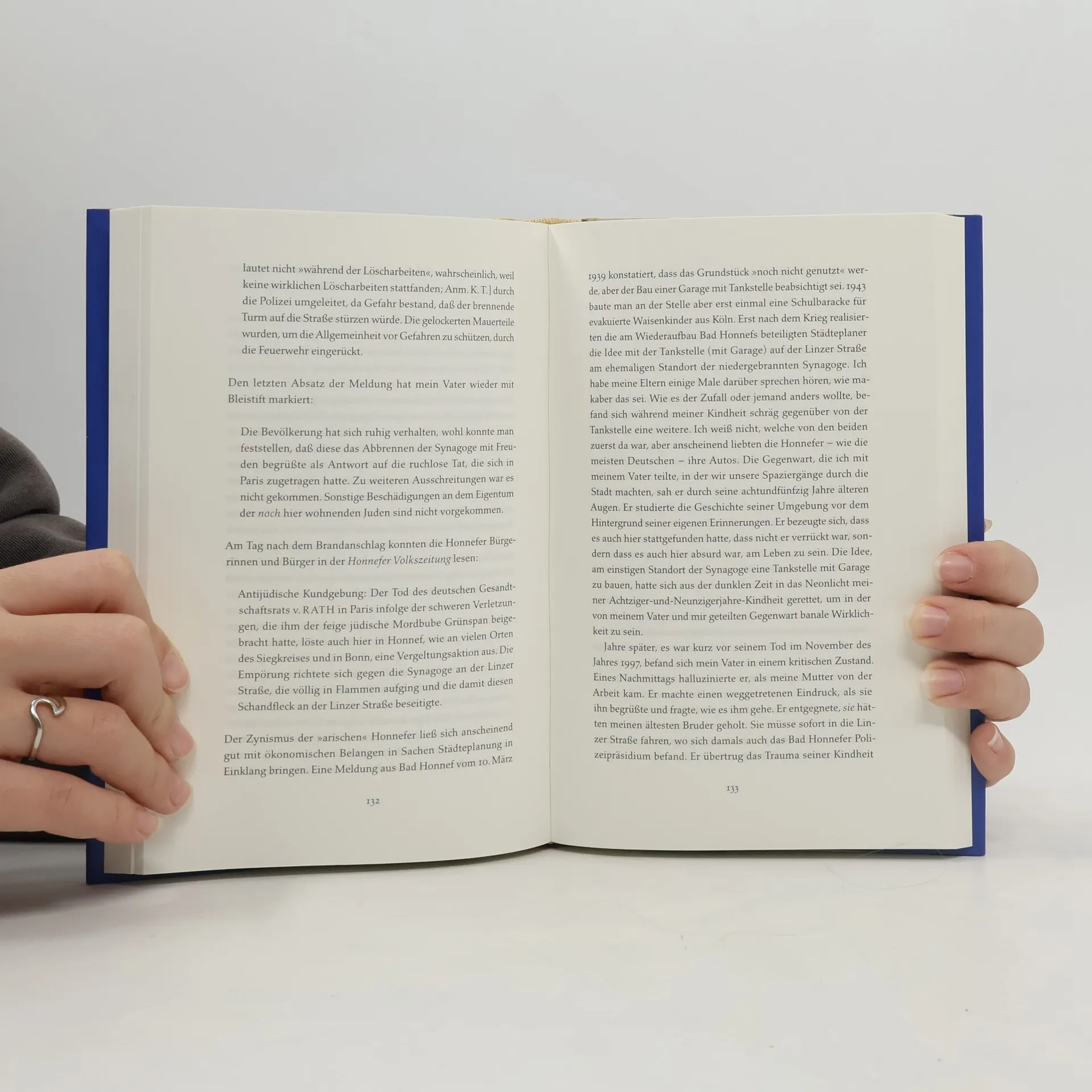 In ›Spur und Abweg‹ stellt Kurt Tallert sich der Verfolgungsgeschichte seiner Familie. Das Besondere an seinem Schicksal und seiner Perspektive auf die deutsche Geschichte: Kurt Tallert ist heute 37 Jahre alt, und doch wurde sein Vater als junger Mann noch von den Nazis als sogenannter Halbjude verfolgt. Bei der Geburt seines Sohnes ist Harry Tallert 58 Jahre alt. Und stirbt zwölf Jahre später. Was bleibt sind Erinnerungen, Notizen, Briefe, Fotos. Spuren eines beschädigten Lebens. Auf diesen Spuren wandelt Kurt Tallert. Sie führen ihn ins Bad Honnef seiner Kindheit, in zahllosen Regionalzügen quer durch die Republik und schließlich zu seiner jüdischen Urgroßmutter Berta – und zu der Frage: Was hat das eigentlich alles mit mir zu tun? Eine Liebeserklärung an einen traumatisierten Vater, sprachgewaltig, bewegend und radikal intim. Kurt Tallert führt uns vor Augen, dass Erinnern oder Vergessen nicht für alle Gegenstand einer Entscheidung ist.
