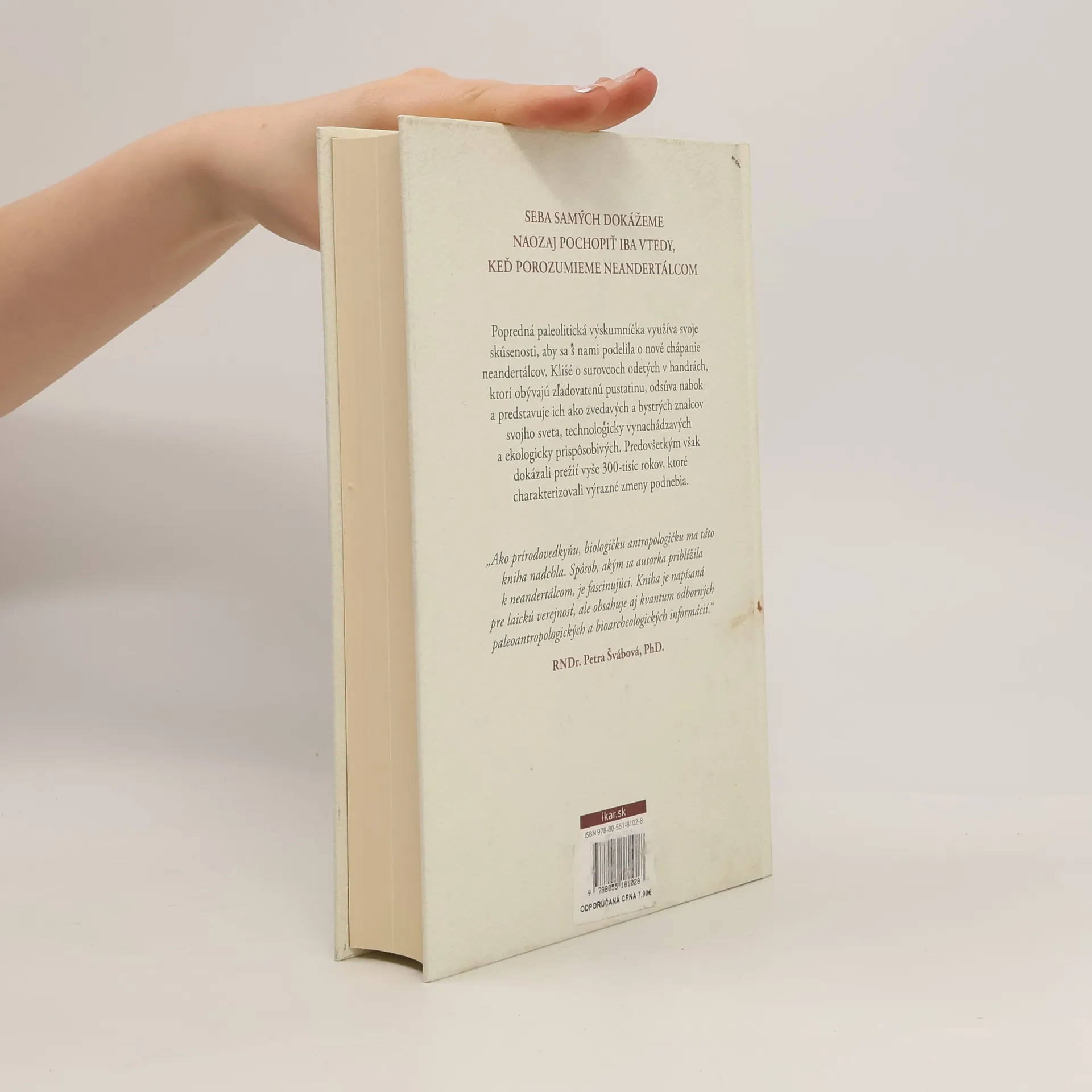 Seba samých dokážeme naozaj pochopiť iba vtedy, keď porozumieme neandertálcom Kniha predstavuje úplnú príručku o neandertálcoch, ktorí sa od svojho objavu pred vyše 160 rokmi zmenili z neúspešných zástupcov ľudského rodokmeňa na najpopulárnejších homininov. Popredná paleolitická výskumníčka využíva svoje skúsenosti, aby sa s nami podelila o nové chápanie neandertálcov. Klišé o surovcoch odetých v handrách, ktorí obývajú zľadovatenú pustatinu, odsúva nabok a predstavuje ich ako zvedavých a bystrých znalcov svojho sveta, technologicky vynachádzavých a ekologicky prispôsobivých, predovšetkým však schopných prežiť vyše 300-tisíc rokov, ktoré charakterizovali výrazné zmeny podnebia. V čase, keď náš druh čelí najväčším výzvam vo svojich dejinách, sme posadnutí tým, čo nás robí osobitými. Lenže plánovanie, spolupráca, altruizmus, remeselná zručnosť, zmysel pre estetiku, predstavivosť a možno dokonca aj túžba po transcendentne za hranicou smrteľnosti, čiže v podstate to, čo nás definuje, bola prítomná aj u neandertálcov a ich DNA ďalej nosíme v sebe. Kniha robí pre neandertálcov to, čo pre nás spravila publikácia Yuvala Noaha Harariho o stručnej histórii ľudstva. Odhaľuje príbeh, v ktorom je naším starým spoločným dedičstvom samotné ľudstvo.