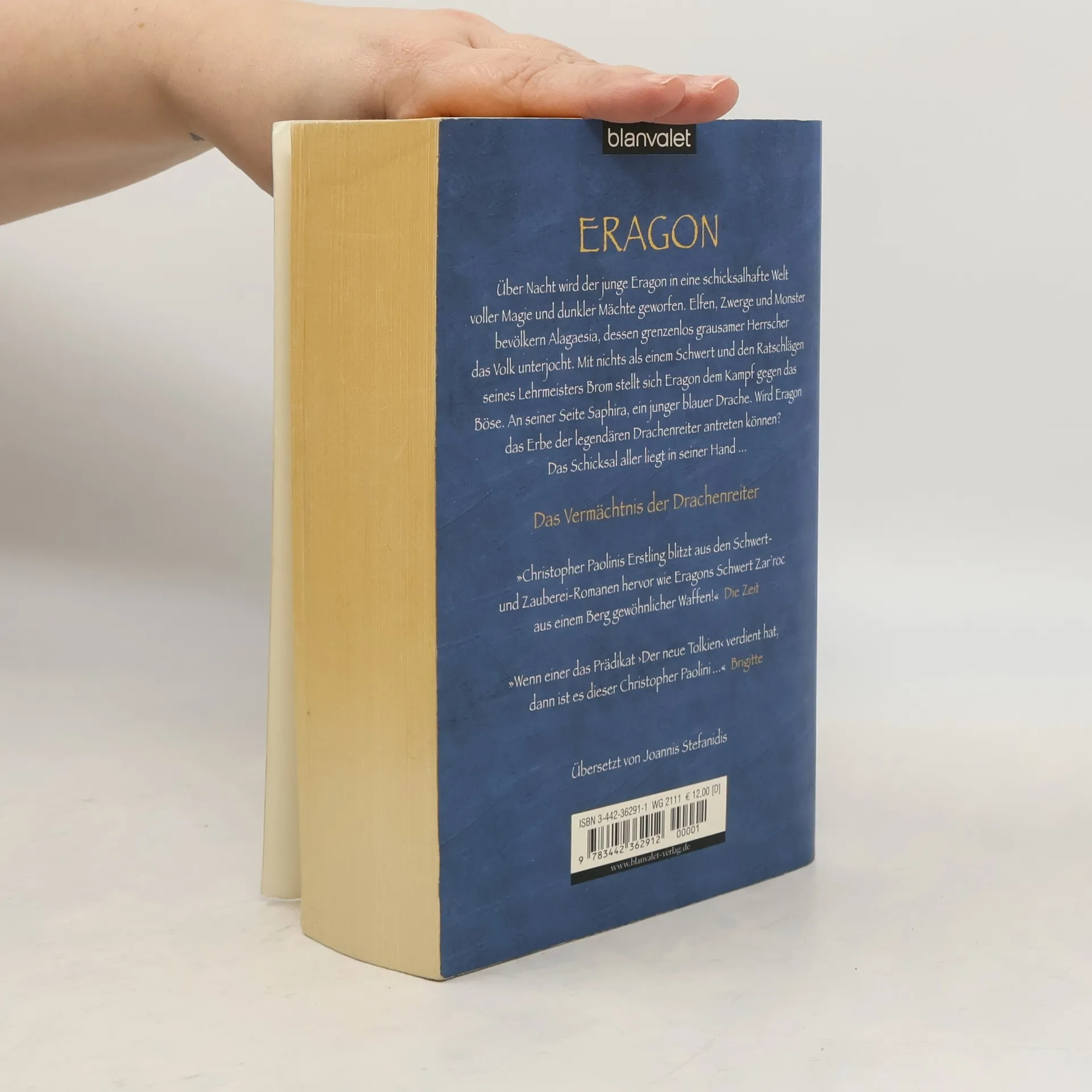 Über Nacht wird der junge Eragon in eine schicksalhafte Welt voller Magie und dunkler Mächte geworfen. Elfen, Zwerge und Monster bevölkern Alagaesia, dessen grenzenlos grausamer Herrscher das Volk unterjocht. Mit nichts als einem Schwert und den Ratschlägen seines Lehrmeisters Brom stellt sich Eragon dem Kampf gegen das Böse. An seiner Seite Saphira, ein junger blauer Drache. Wird Eragon das Erbe der legendären Drachenreiter antreten können? Das Schicksal aller liegt in seiner Hand … Ein faszinierendes Fantasy-Epos in der Tradition von J. R. R. Tolkiens 'Der Herr der Ringe', geschrieben von einem 15jährigen literarischen Wunderkind!