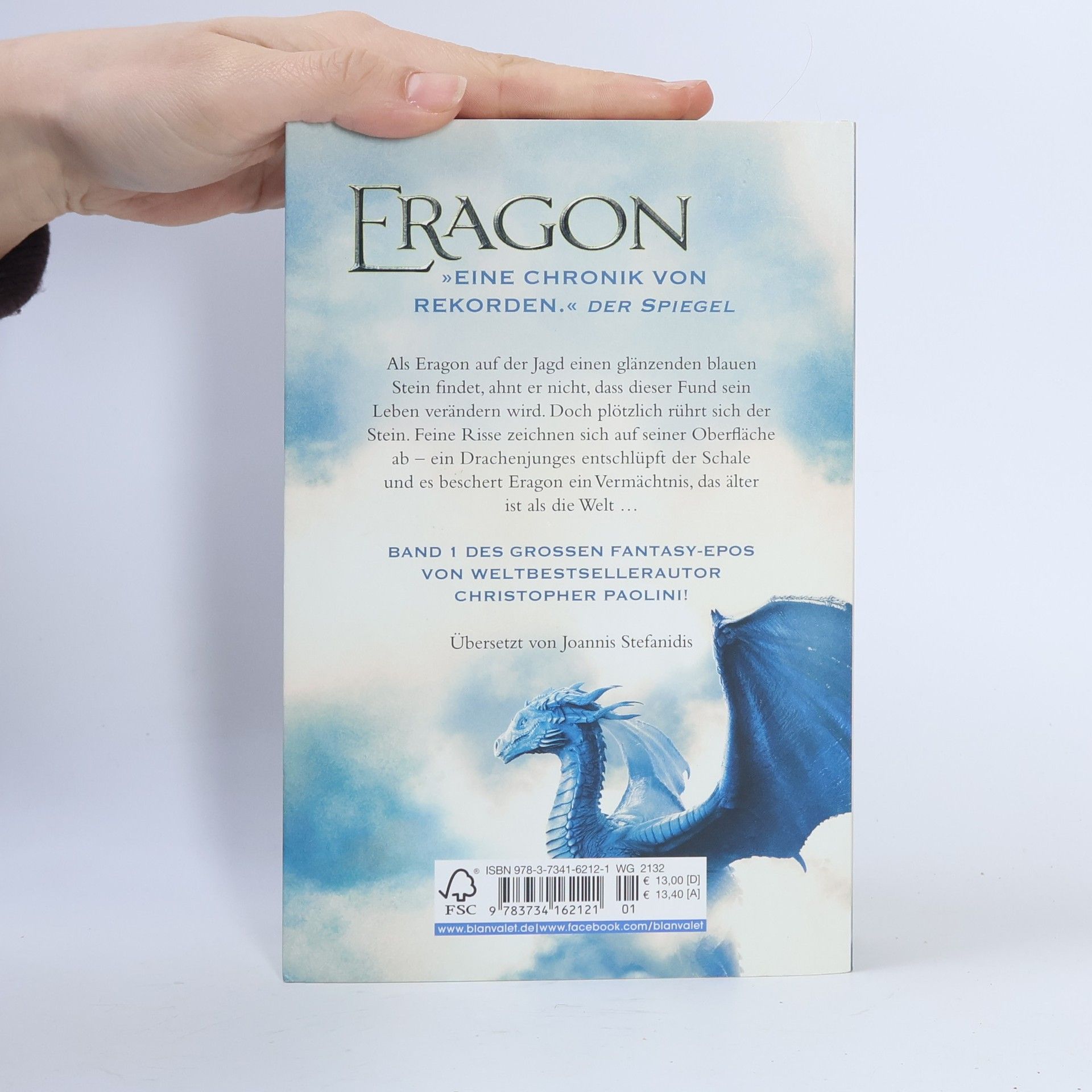 Als Erbe der legendären Drachenreiter stellt sich Eragon gemeinsam mit seinem blauen Drachen, dem Kampf gegen den grausamen Herrscher ihres Landes. Das Schicksal aller liegt in seiner Hand … Alles beginnt, als Eragon bei der Jagd einen blauen Stein findet. Dieser Fund wird sein Leben für immer verändern. Denn dem vermeintlichen Stein entschlüpft ein Drachenjunges – und beschert Eragon ein Vermächtnis, das älter ist als die Welt.