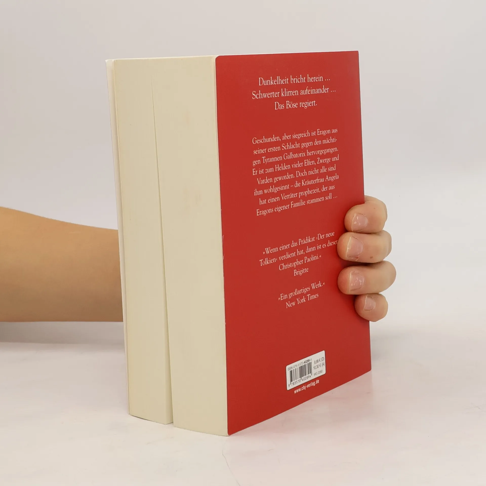 Die Dämmerung naht, und die Verzweiflung wächst, während finstere Mächte regieren. Eragon und sein Drache Saphira sind erschöpft, aber siegreich aus der ersten Schlacht gegen den Tyrannen Galbatorix hervorgegangen. Eragon ist zum Hoffnungsträger vieler Elfen, Zwerge und Varden geworden, doch nicht alle sind ihm wohlgesinnt. Die Kräuterkundige Angela prophezeit einen Verräter aus Eragons eigener Familie, und Eragon ist überzeugt, dass sein Cousin Roran niemals gegen ihn handeln würde. Doch die Prophezeiung spricht eine andere Sprache. In der blutigen Schlacht um Farthen Dûr erleidet Eragon schwere Verluste, darunter den Vardenkönig Ajihad, der ihm auf dem Sterbebett den Auftrag erteilt, über sein Volk zu wachen. Nach dem Sieg und voller Trauer um die Gefallenen folgt Eragon Arya nach Ellesméra, um seine magischen Fähigkeiten zu verfeinern. Doch bevor er abreisen kann, wird Ajihads Tochter Nasuada zur neuen Anführerin der Varden gewählt, was Eragon in eine diplomatische Falle führt. Mit Geschick sichert er sich ihre Loyalität und gewinnt Ansehen bei den Varden, Zwergen und Elfen. Galbatorix kann die Niederlage nicht akzeptieren und sammelt seine Armeen. Chaos und Verrat breiten sich im Reich aus, und Eragon muss sich fragen, wem er noch trauen kann. Als Roran wieder auftaucht, wird die Bedrohung durch den Verräter greifbar. Auch Murtagh, der nach der Schlacht verschwunden war, wirft Fragen auf. Eragon steht vor der Herausforde