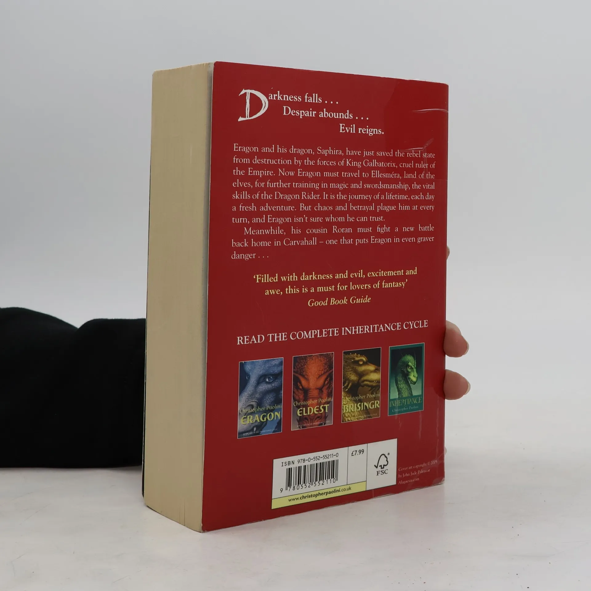 Eragon and his dragon, have just saved the rebel state from destruction by the forces of King Galbatorix. Now, Eragon must travel to Ellesmera for further training in magic. Meanwhile, his cousin Roran must fight a new battle back home in Carvahall - one that puts Eragon in even graver danger. Will the king's dark hand strangle all resistance?