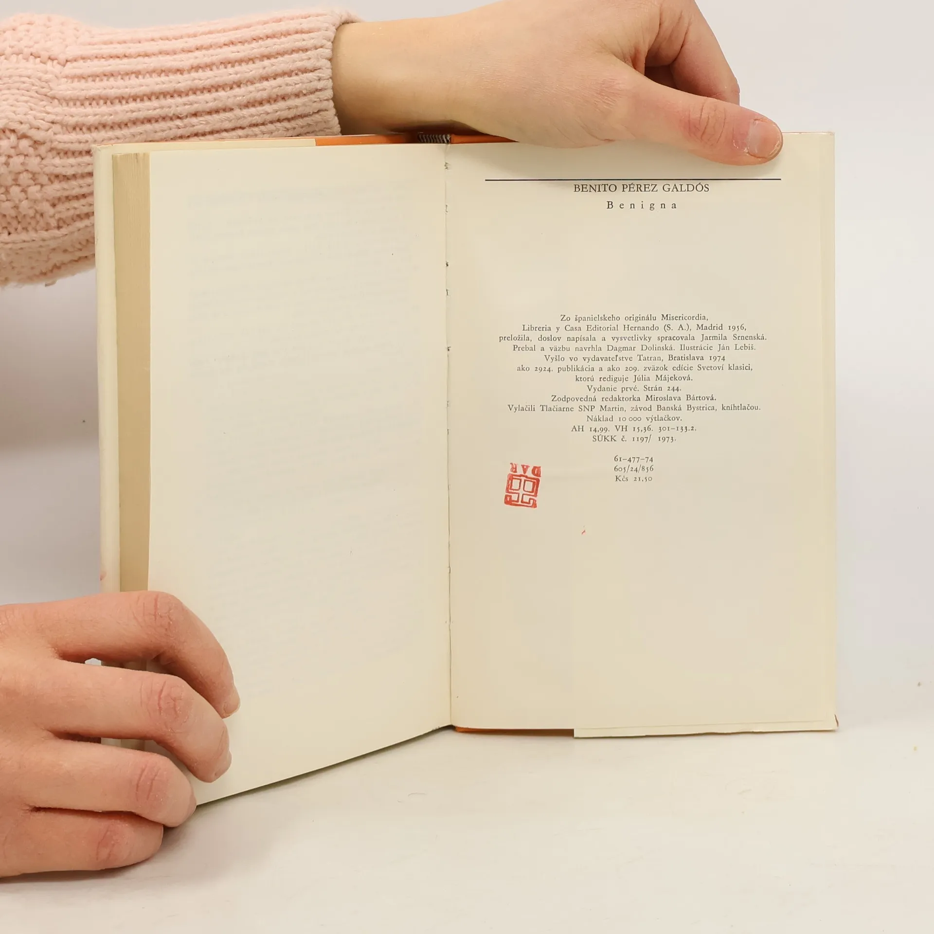 Po námet románu Benigna si Galdós zašiel do štvrtí maďarskej bedače a našiel tam krásny typ obetavej a statočnej ženy, slúžky a žobráčky, vnikol však aj do života skrachovanej šľachtickej rodiny v postave dome Paky, ktorá svojou ľahkomyseľnosťou, záľubou v radovánkach a zábavách privedie rodinu na mizinu. Slúžka Benigna neopúšťa rodinu ani v zlých časoch, rozhodne sa ísť žobrať a takto vydržiava a živí paniu i jej dve deti. Po rokoch biedy a odriekania usmeje sa na nich šťastie v podobe dedičstva. V dome sa však chopí vlády synova žena Juliana a vyženie dobrotivú a obetavú Benginu...