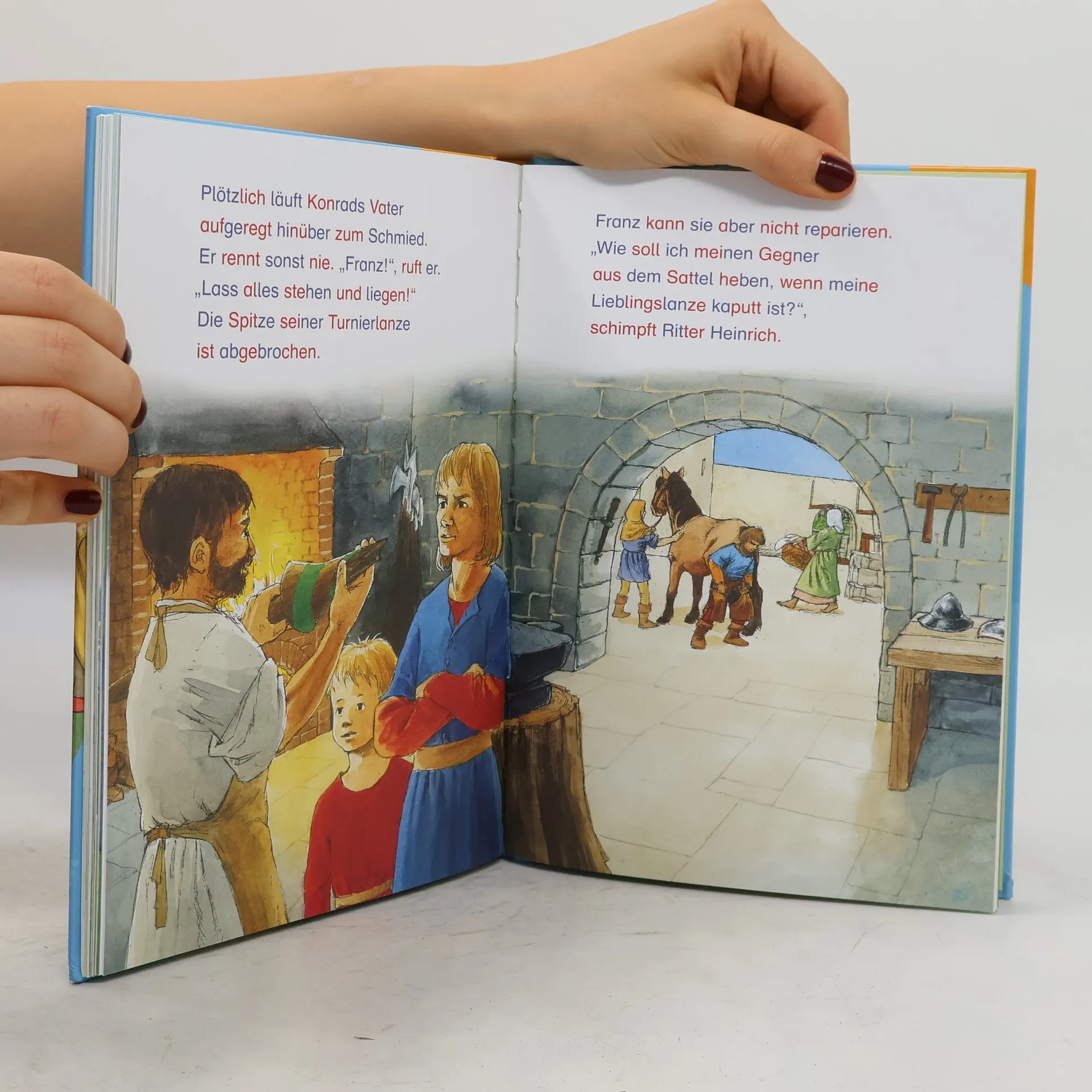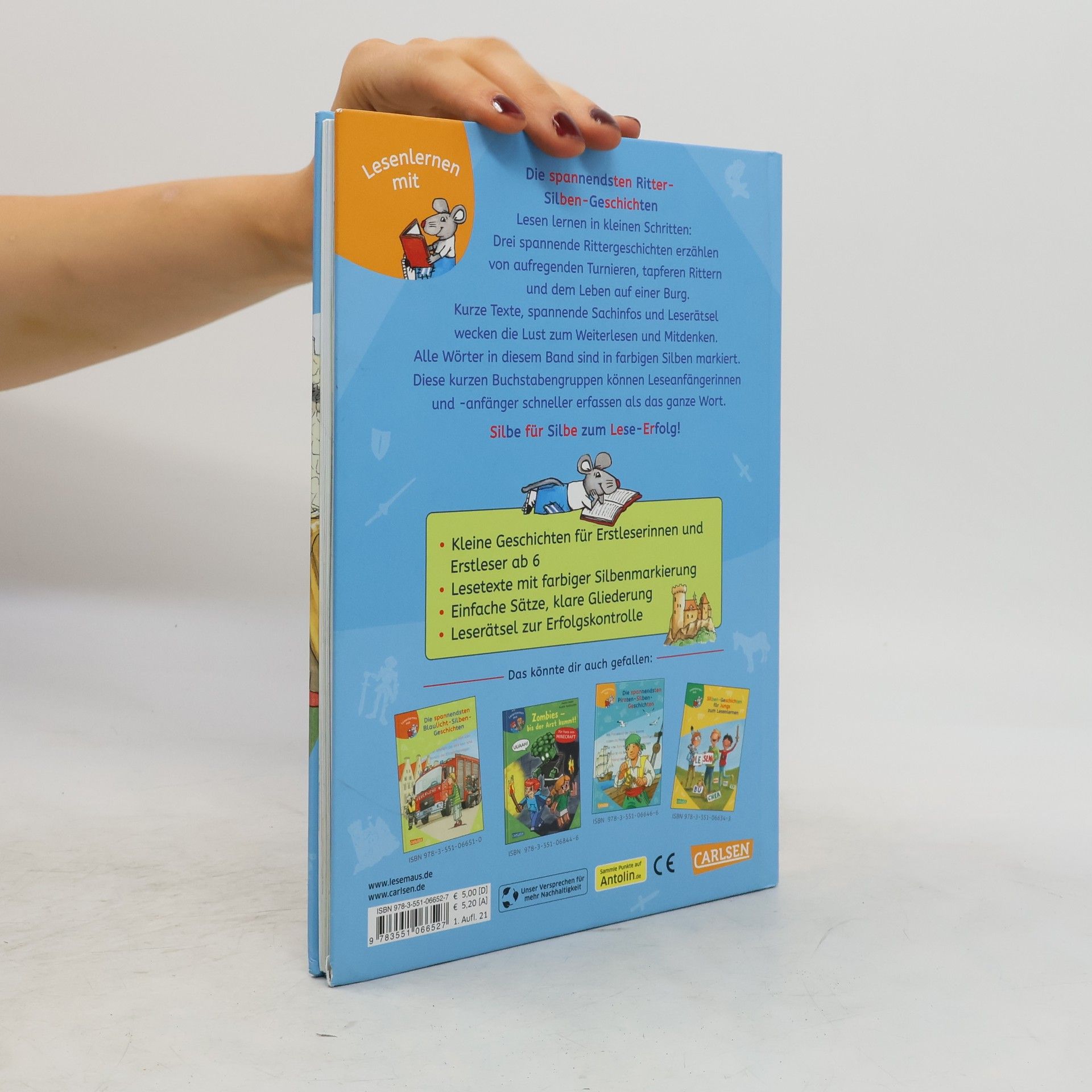 Tolles Erstlesebuch für Jungen – das ideale Geschenk für die Schultüte! Drei abenteuerliche Rittergeschichten erzählen von aufregenden Turnieren, tapferen Rittern und dem Leben auf einer Burg. Spannende Geschichten, die spielerisch ein Gefühl für Silben vermitteln Alle Wörter in diesem Band sind in farbigen Silben markiert. Diese kurzen Buchstabengruppen können Leseanfängerinnen und -anfänger schneller erfassen als das ganze Wort. Kurze Texte, spannende Sachinfos und Leserätsel wecken die Lust zum Weiterlesen und Mitdenken. Der Sammelband enthält folgende Geschichten: Otto auf der Ritterburg Achtung, Überfall auf die Ritterburg! Ein Tag auf der Ritterburg So macht Lesenlernen Spaß! LESEMAUS zum LESENLERNEN – die Reihe für Erstleser! Spannende und leichte Geschichten für Jungen und Mädchen, lustige Leserätsel und kindgerechte Sachinfos motivieren Leseanfänger zum Weiterlesen und Mitdenken.