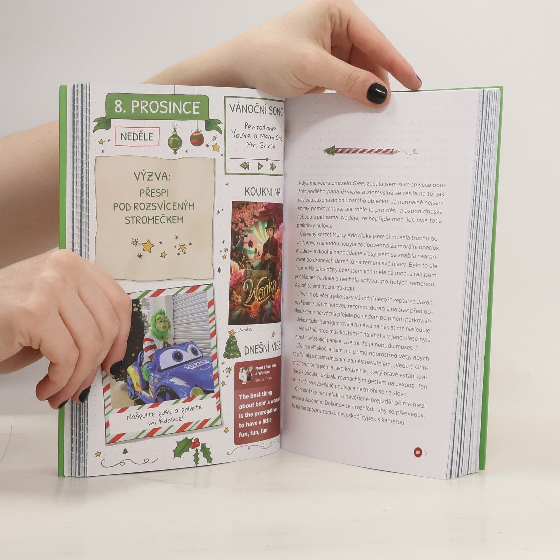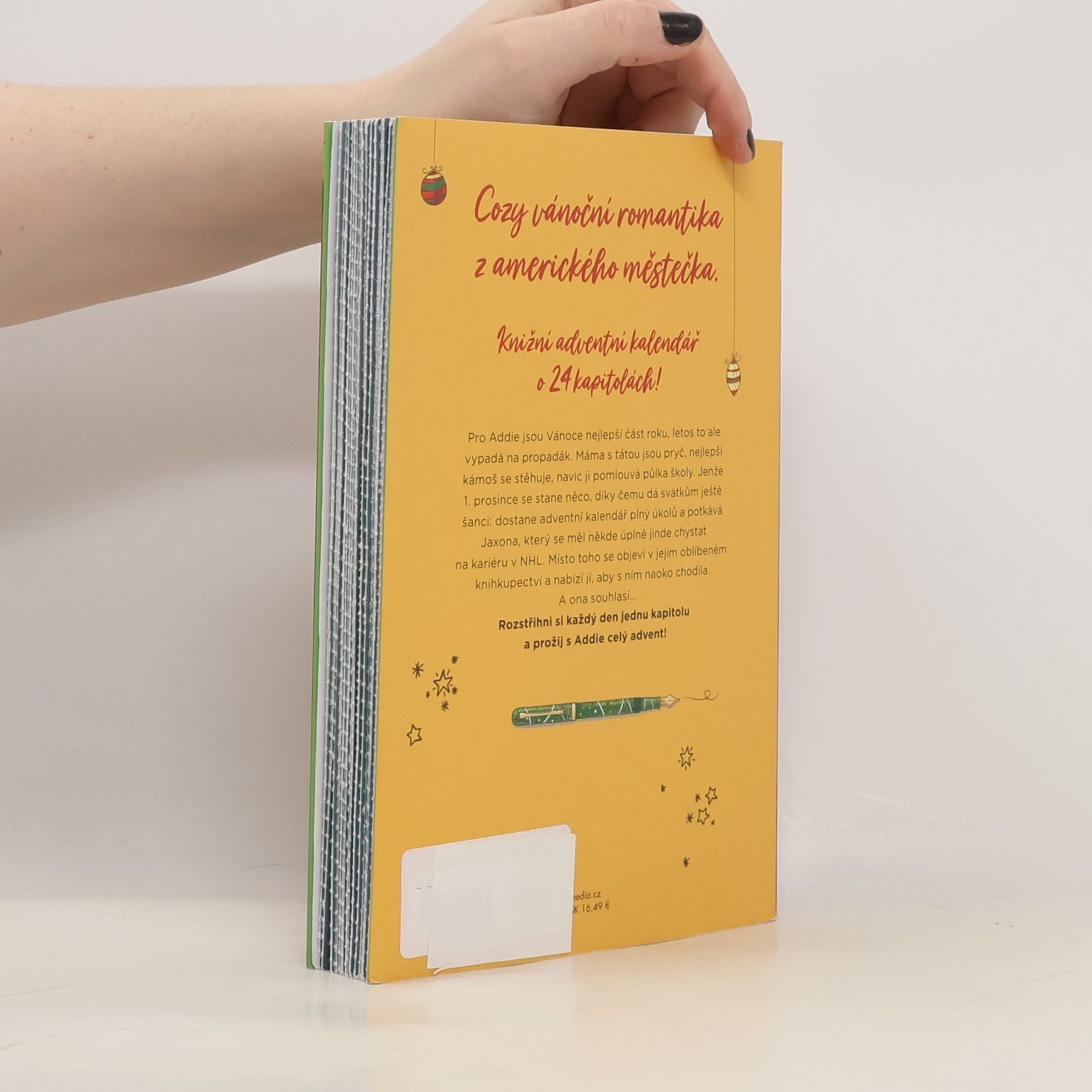 Cozy vánoční romantika z amerického městečka. Knižní adventní kalendář o 24 kapitolách! Pro Addie jsou Vánoce nejlepší část roku, letos to ale vypadá na propadák. Máma s tátou jsou pryč, nejlepší kámoš se stěhuje, navíc ji pomlouvá půlka školy. Jenže 1. prosince se stane něco, díky čemu dá svátkům ještě šanci: dostane adventní kalendář plný úkolů a potkává Jaxona, který se měl úplně jinde chystat na kariéru v NHL. Místo toho se objeví v jejím oblíbeném knihkupectví a nabízí jí, aby s ním naoko chodila. A ona souhlasí… Rozstřihni si každý den kapitolu a prožij s Addie celý advent!