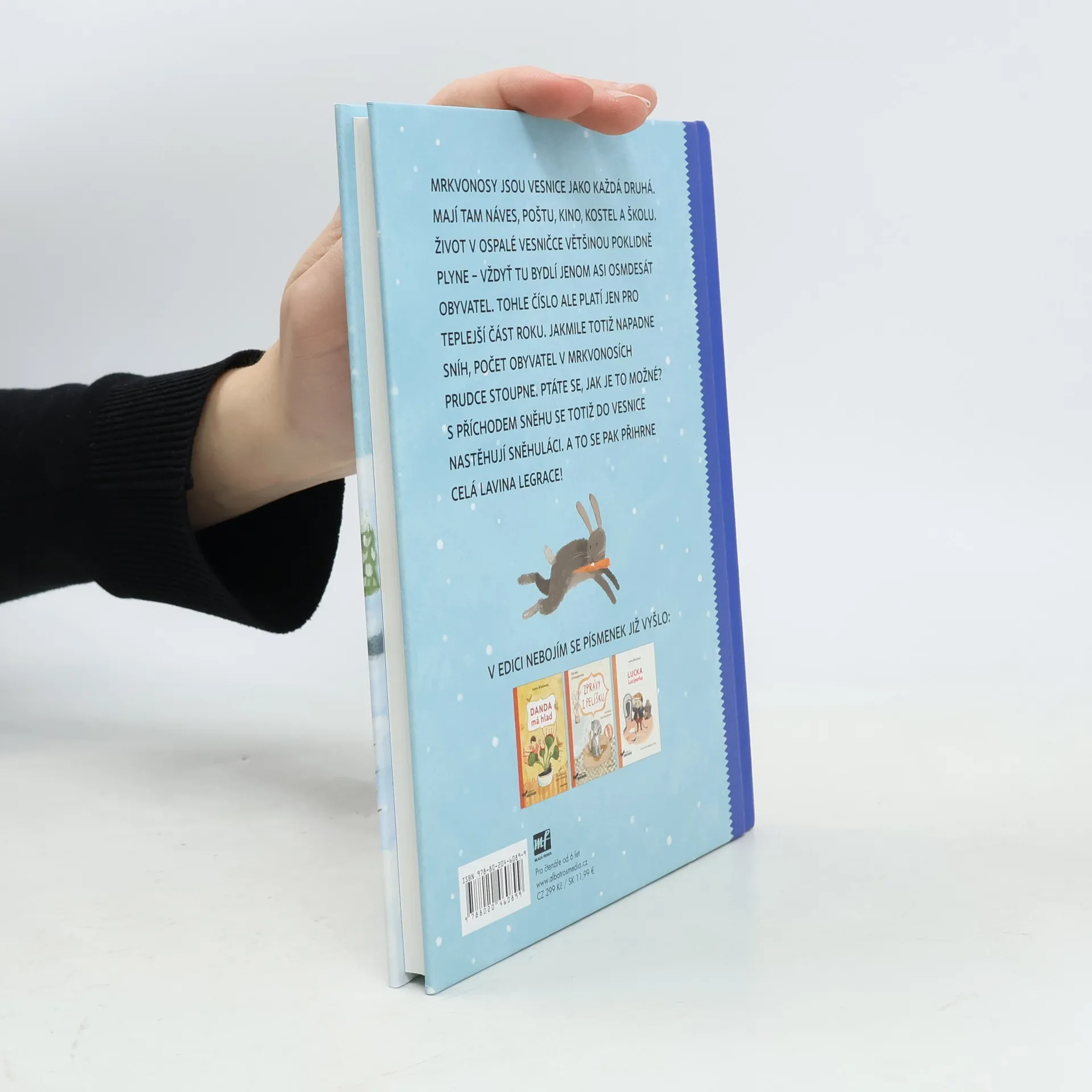 Mrkvonosy jsou vesnice jako každá druhá. Mají tam náves, poštu, kino, kostel a školu. Život v ospalé vesničce většinou poklidně plyne – vždyť tu bydlí jenom asi osmdesát obyvatel. Tohle číslo ale platí jen pro teplejší část roku. Jakmile totiž napadne sníh, počet obyvatel v Mrkvonosích prudce stoupne. Ptáte se, jak je to možné? S příchodem sněhu se totiž do vesnice nastěhují sněhuláci. A to se pak přihrne celá lavina legrace!