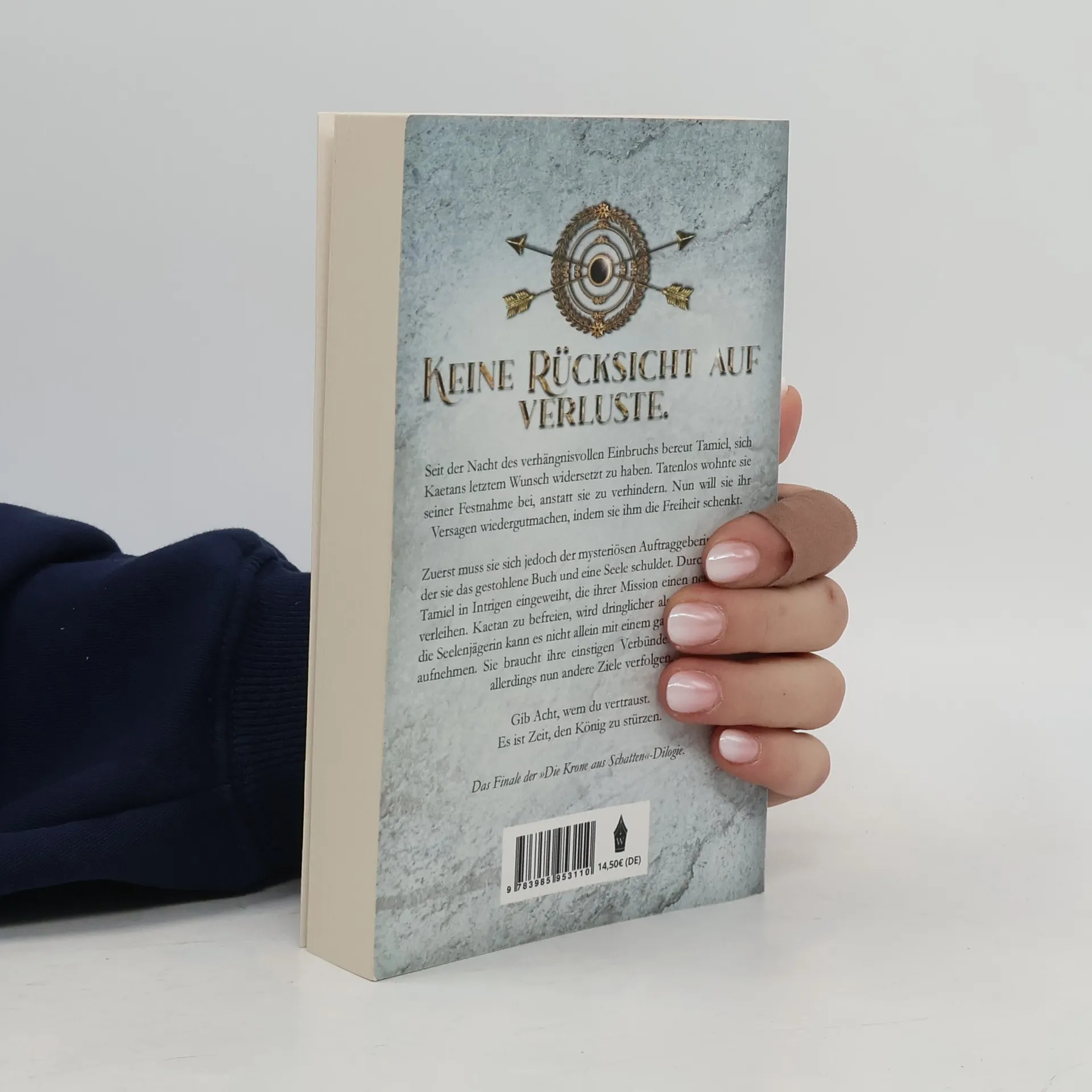 »Keine Rücksicht auf Verluste.« Seit der Nacht des verhängnisvollen Einbruchs bereut Tamiel, sich Kaetans letztem Wunsch widersetzt zu haben. Tatenlos wohnte sie seiner Festnahme bei, anstatt sie zu verhindern. Nun will sie ihr Versagen wiedergutmachen, indem sie ihm die Freiheit schenkt. Zuerst muss sie sich jedoch der mysteriösen Auftraggeberin stellen, der sie das gestohlene Buch und eine Seele schuldet. Durch sie wird Tamiel in Intrigen eingeweiht, die ihrer Mission einen neuen Sinn verleihen. Kaetan zu befreien, wird dringlicher als je zuvor. Aber die Seelenjägerin kann es nicht allein mit einem ganzen Königreich aufnehmen. Sie braucht ihre einstigen Verbündeten zurück, die allerdings nun andere Ziele verfolgen. Gib Acht, wem du vertraust. Es ist Zeit, den König zu stürzen. Das Finale der »Die Krone aus Schatten«-Dilogie.