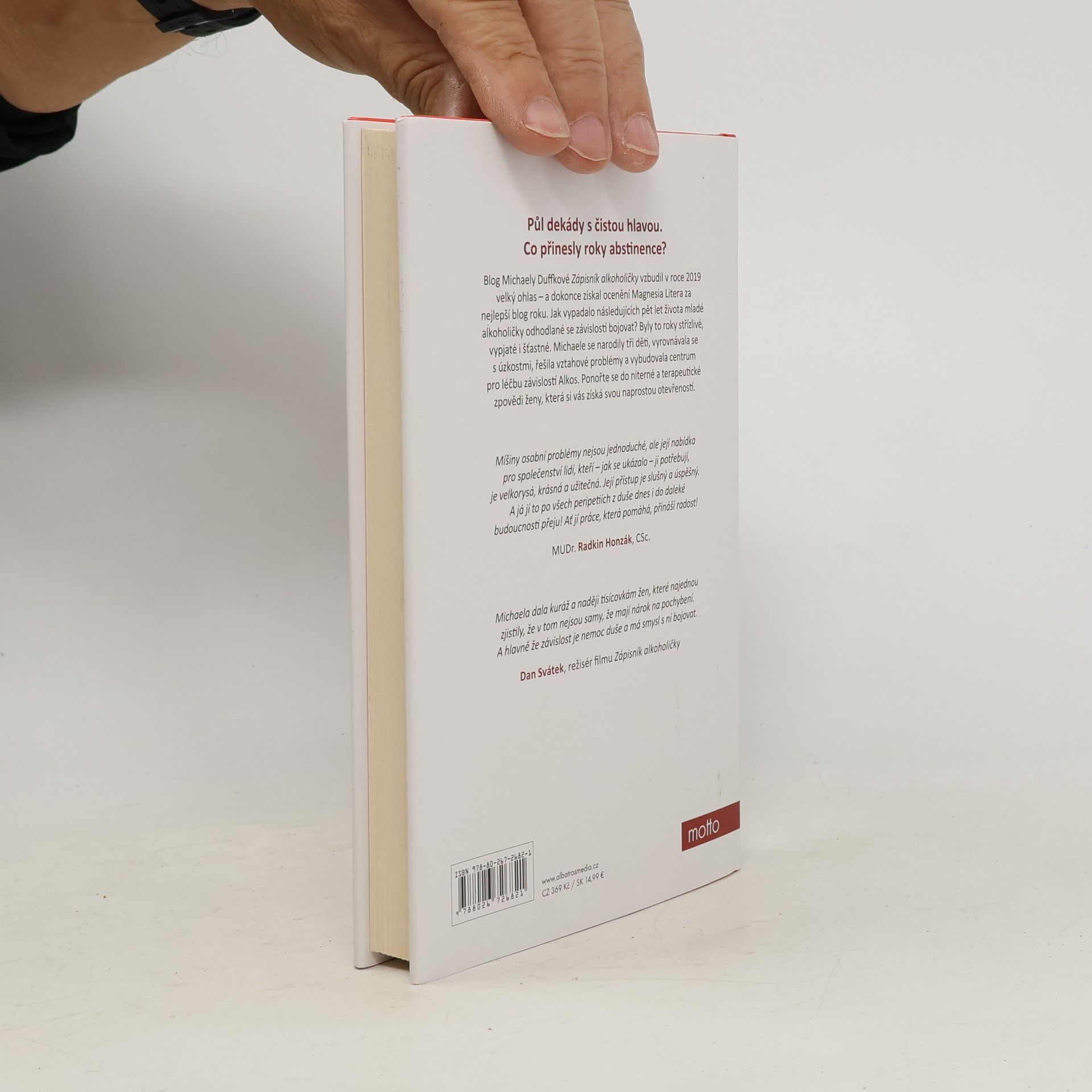Mladá autorka si získala pozornost svým blogem, kde otevřeně popisovala svůj boj s démonem alkoholu. Pět let už je na suchu, ale nebylo to rozhodně jednoduché. Blog Michaely Duffkové Zápisník alkoholičky vzbudil v roce 2019 velký ohlas - a dokonce získal ocenění Magnesia Litera za nejlepší blog roku. Jak vypadalo následujících pět let života mladé alkoholičky odhodlané se závislostí bojovat? Byly to roky střízlivé, vypjaté i šťastné. Michaele se narodily tři děti, vyrovnávala se s úzkostmi, řešila vztahové problémy a vybudovala centrum pro léčbu závislostí Alkos. Ponořte se do niterné a terapeutické zpovědi ženy, která si vás získá svou naprostou otevřeností. Nakladatelská anotace.