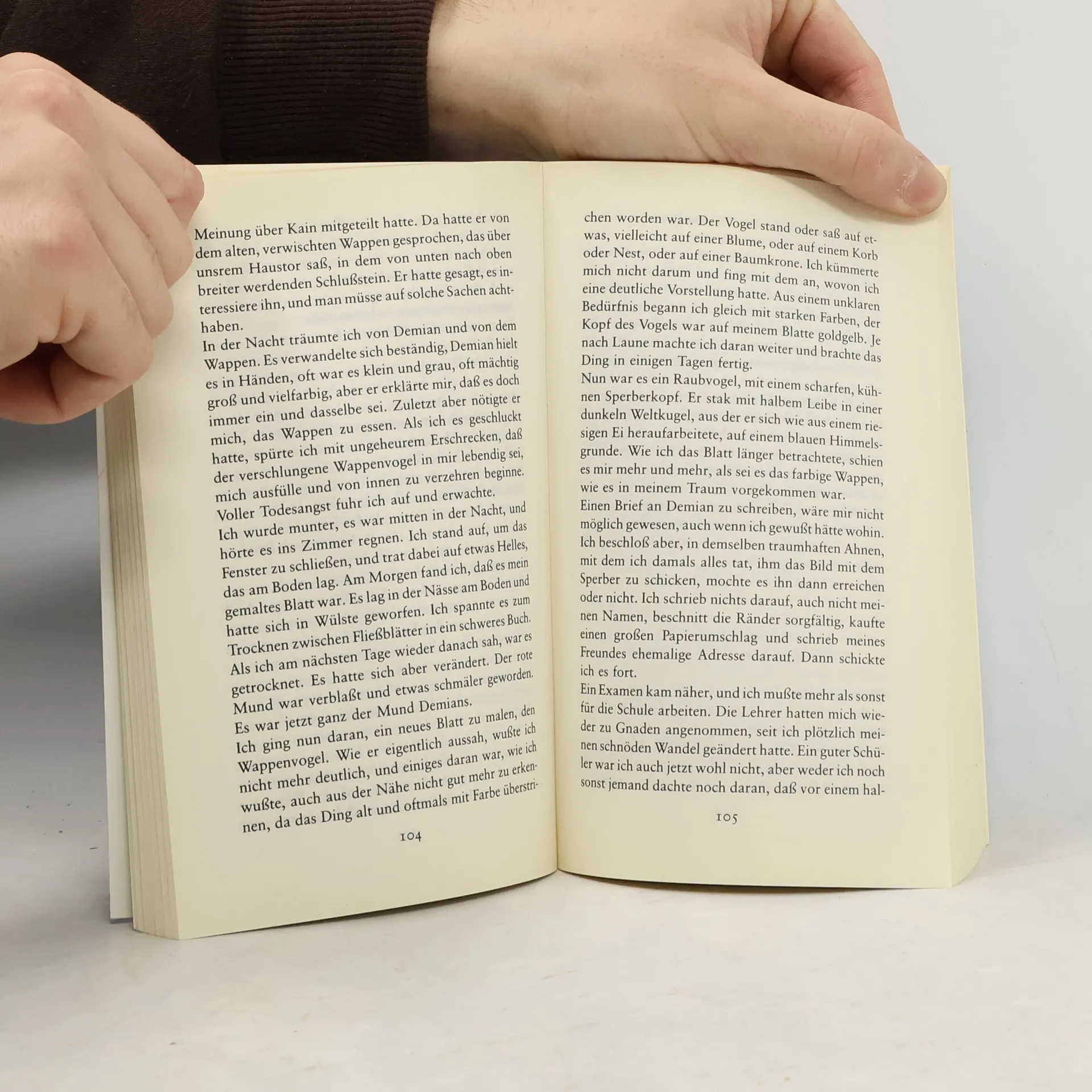 Wie alle Hauptwerke Hermann Hesses hat auch der Demian, den der damals 40jährige Autor mitten im Ersten Weltkrieg schrieb, eine ebenso ungewöhnliche wie spannende Entstehungs- und Wirkungsgeschichte. Daß dieses im Herbst 1917 vollendete Buch erst im Juni 1919, ein halbes Jahr nach Kriegsende, veröffentlicht wurde, lag an der Unbekanntheit des Verfassers. Denn Hesse hatte das Manuskript dem Verlag als das Erstlingswerk eines kranken jungen Dichters empfohlen, des zeitkritischen Poeten Emil Sinclair, der bisher nur in Zeitungen und Zeitschriften durch pazifistische Mahnrufe und Erzählungen aufgefallen war (die gleichfalls von Hesse stammten). Doch trotz des Inkognitos erlebte das Buch eine geradezu stürmische Aufnahme und wurde noch im Erscheinungsjahr mit dem Fontane-Preis für das beste Erstlingswerk eines Nachwuchsautors ausgezeichnet. Thomas Mann verglich die elektrisierende Wirkung des Buches mit der von Goethes Werther, da es »mit unheimlicher Genauigkeit den Nerv der Zeit traf und eine ganze Jugend, die wähnte aus ihrer Mitte sei ihr ein Künder ihres tiefsten Lebens entstanden, zu dankbarem Entzücken hinriß«. Bis zur Entdeckung des Pseudonyms im Mai 1920 erschienen drei Auflagen, denen dann unter Hesses eigenem Namen zu seinen Lebzeiten noch 93 weitere folgten.