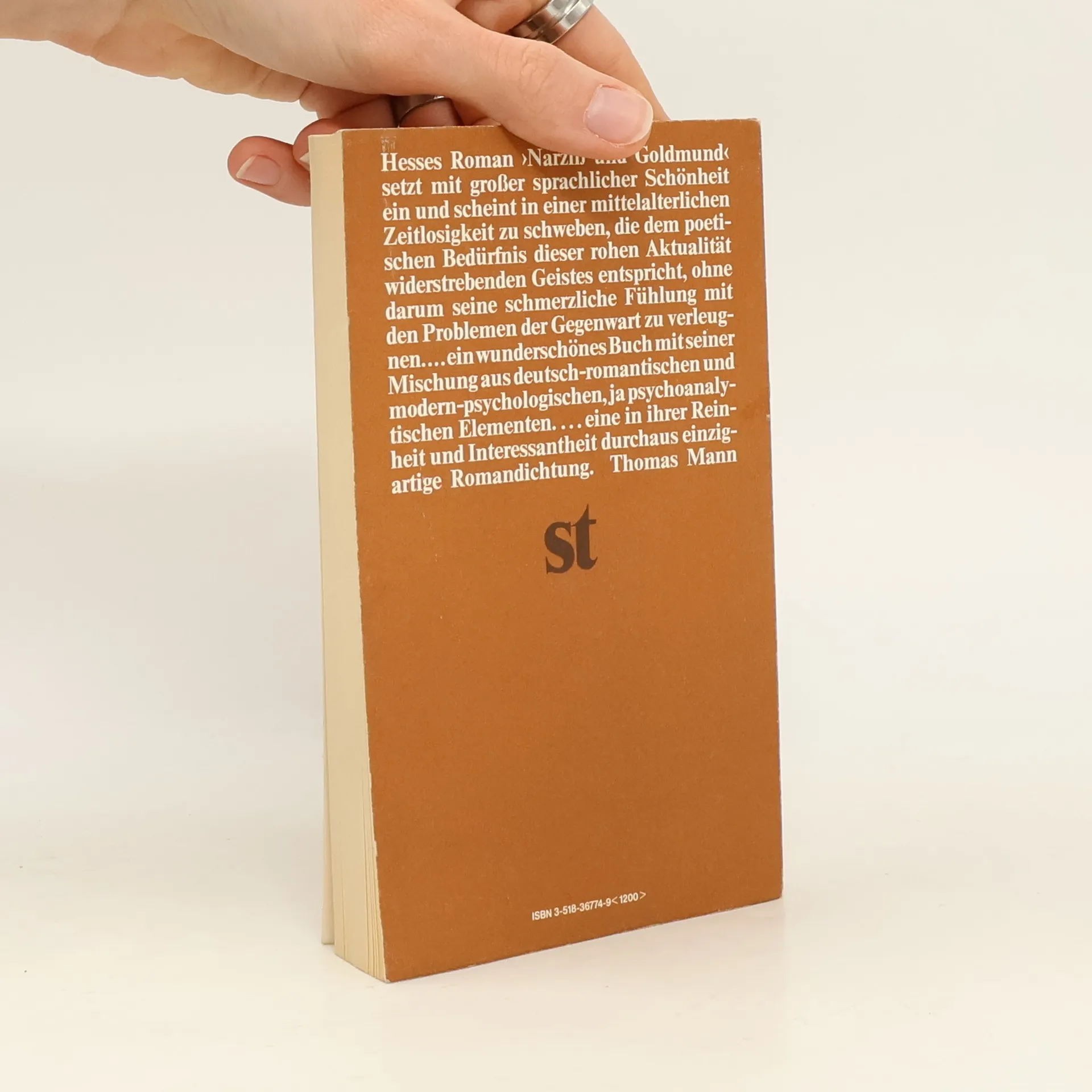 "Hesses Roman "Narziß und Goldmund" setzt mit großer sprachlicher Schönheit ein und scheint in einer mittelalterlichen Zeitlosigkeit zu schweben, die dem poetischen Bedürfnis dieses der rohen Aktualität widerstrebenden Geistes entspricht, ohne darum seine schmerzliche Fühlung mit den Problemen der Gegenwart zu verleugnen...ein wunderschönes Buch mit seiner Mischung aus deutsch-romantischen und modern-psychologischen, ja psychoanalytischen Elementen...eine in ihrer Reinheit und Interessantheit durchaus einzigartige Romandichtung." Thomas Mann