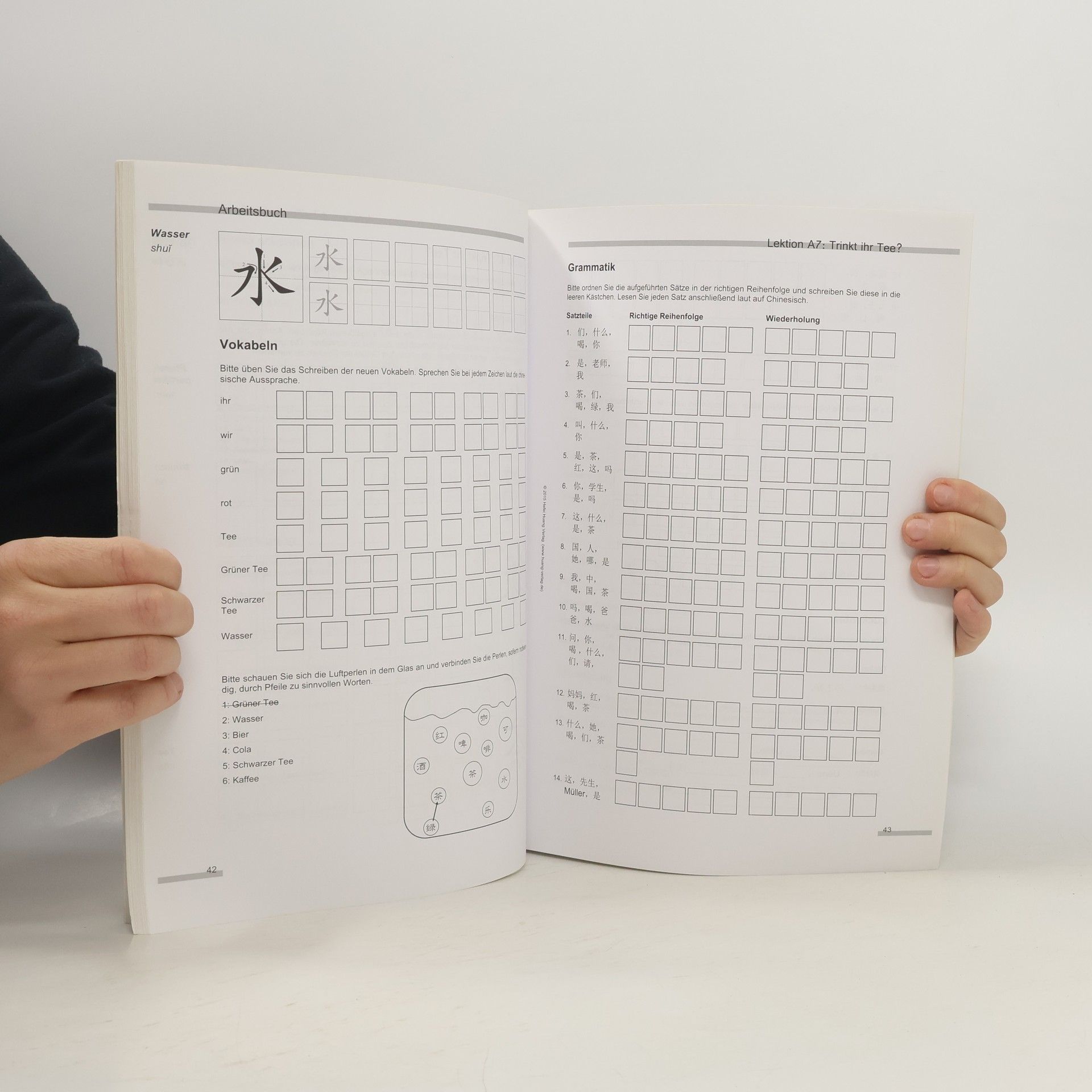 Das Arbeitsbuch zum ersten Band der Lehrreihe 'Unvergessliches Chinesisch' bietet dem Leser die Möglichkeit, den Lernstoff ausführlich zu üben und zu vertiefen. Dabei werden die Schriftzeichen, Vokabeln, Grammatiken, Mustersätze und Dialoge der Lektionen 1 bis 15 komplett abgedeckt. Um dem Leser eine Selbstkontrolle zu ermöglichen, sind im Anhang des Arbeitsbuchs Lösungen zu den Übungen dokumentiert. Sämtliche Schriftzeichen können in vorgefertigten Formularen schreiben gelernt werden. Schablonen helfen, eine formschöne Schrift zu erlangen. Strichreihenfolge und Strichrichtungen stellen sicher, dass ein Zeichen korrekt geübt wird. Die Vokabeln der Lektionen 1 bis 15 sind vollständig in Übungen erfasst. Durch wiederholtes Schreiben können diese schreibtechnisch und visuell memoriert werden. Übungen zur Grammatik und Wortspiele runden das Arbeitsbuch ab. Es wird darauf geachtet, dass Vokabeln und Redewendungen aus vorhergehenden Lektionen oft wiederholt werden, um eine Verankerung im Gedächtnis zu erlangen. Um eine flexible Verwendung des Lernmaterials zu ermöglichen, sind die Seiten den Arbeitsbuchs perforiert und heraustrennbar. Auf diese Weise können aktuell zu lernende Lektionen flexibel zusammengestellt werden.