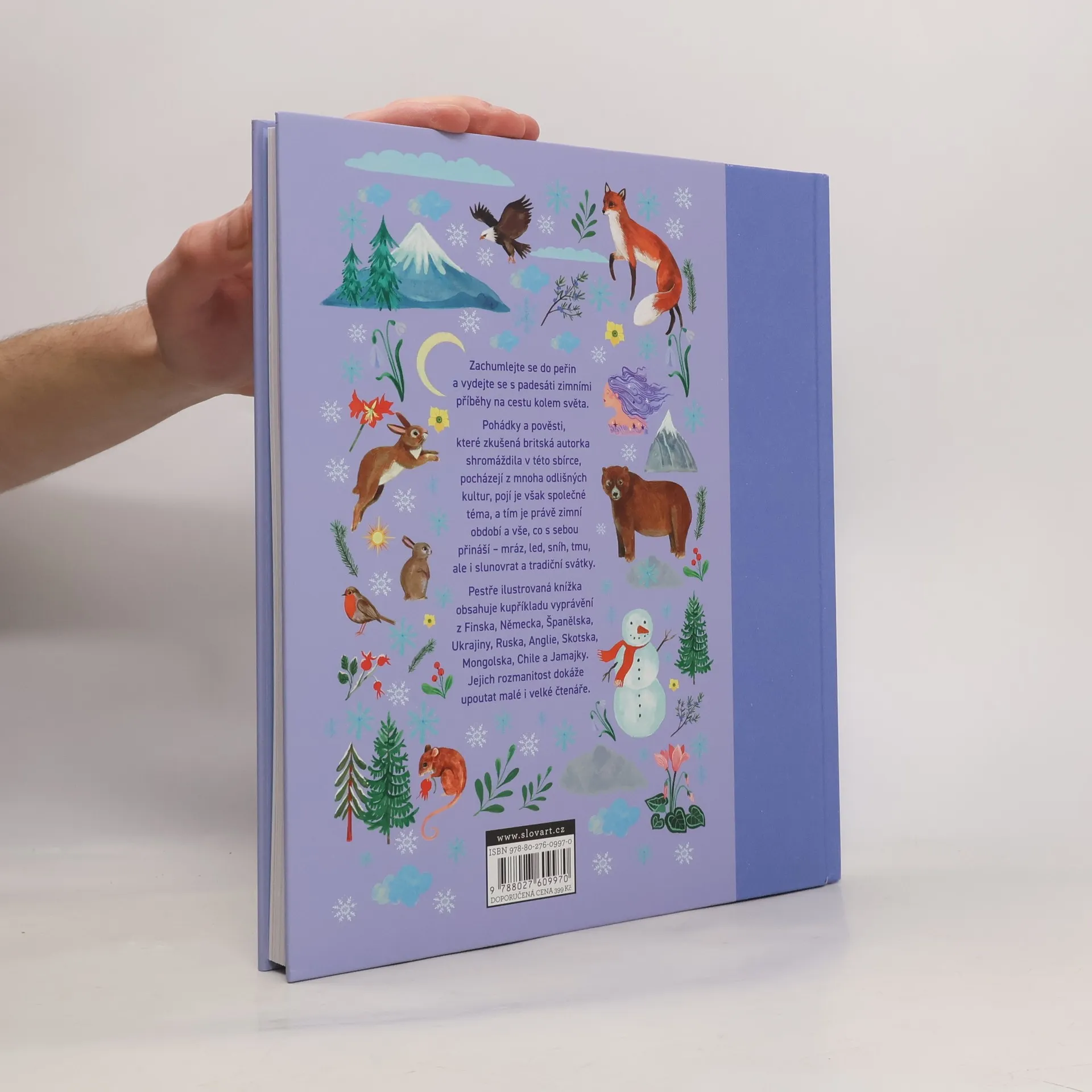 Zachumlejte se do peřin vydejte se s lidovými zimními příběhy na cestu kolem světa. Pohádky a pověsti, které zkušená britská autorka shromáždila v této sbírce, pocházejí z mnoha odlišných kultur, pojí je však společné téma, a tím je právě zimní období a vše, co s sebou přináší - mráz, led, sníh, tmu, ale i slunovrat a tradiční svátky. Pestře ilustrovaná knížka obsahuje kupříkladu příběhy z Finska, Německa, Španělska, Ukrajiny, Ruska, Anglie, Skotska, Mongolska, Chile i Jamajky. Jejich rozmanitost dokáže upoutat malé i velké čtenáře.