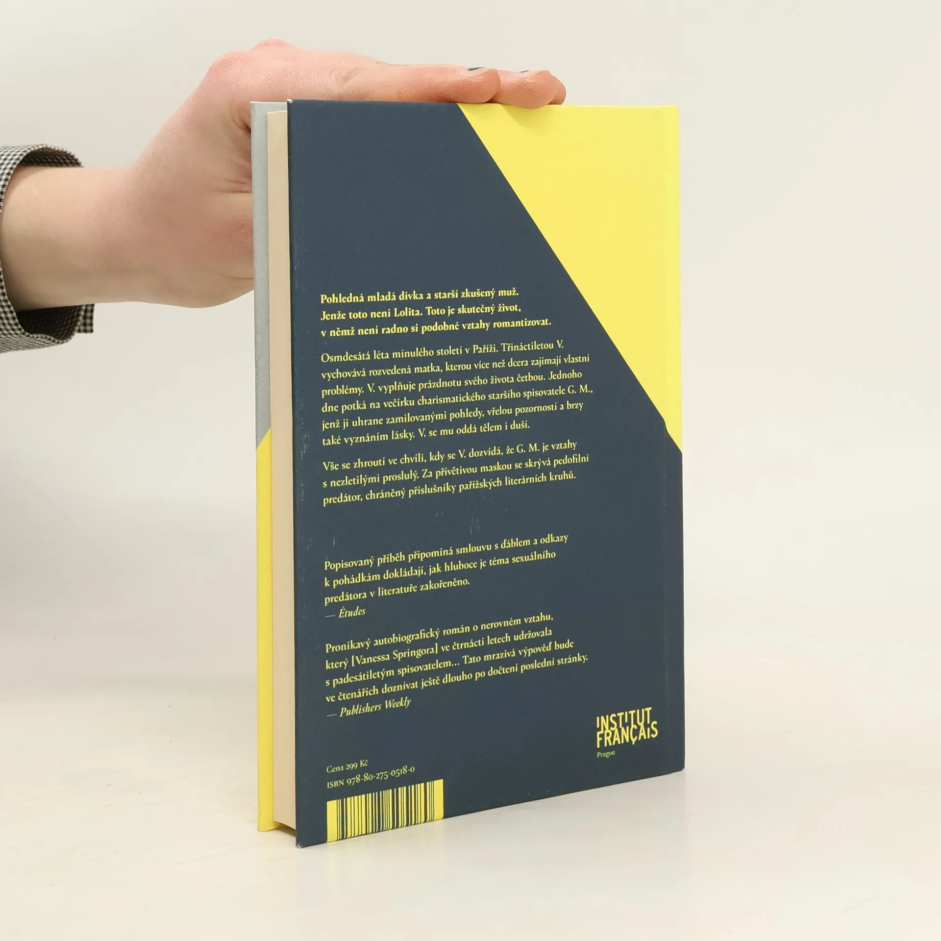 Pohledná mladá dívka a starší zkušený muž. Jenže toto není Lolita. Toto je skutečný život, v němž není radno si podobné vztahy romantizovat. Osmdesátá léta minulého století v Paříži. Třináctiletou V. vychovává rozvedená matka, kterou více než dcera zajímají vlastní problémy. V. vyplňuje prázdnotu svých dní četbou. Jednoho dne potká na večírku charismatického staršího spisovatele G. M., jenž ji uhrane zamilovanými pohledy, vřelou pozorností a brzy také vyznáním lásky a slibem, že jí nikdy neublíží. V. se mu oddá tělem i duší a nenechá se odradit ani hrozbou policejního vyšetřování. Vše se zhroutí ve chvíli, kdy se V. dozvídá, že G. M. je vztahy s nezletilými proslulý. Za přívětivou maskou se skrývá pedofilní predátor, chráněný příslušníky pařížských literárních kruhů.