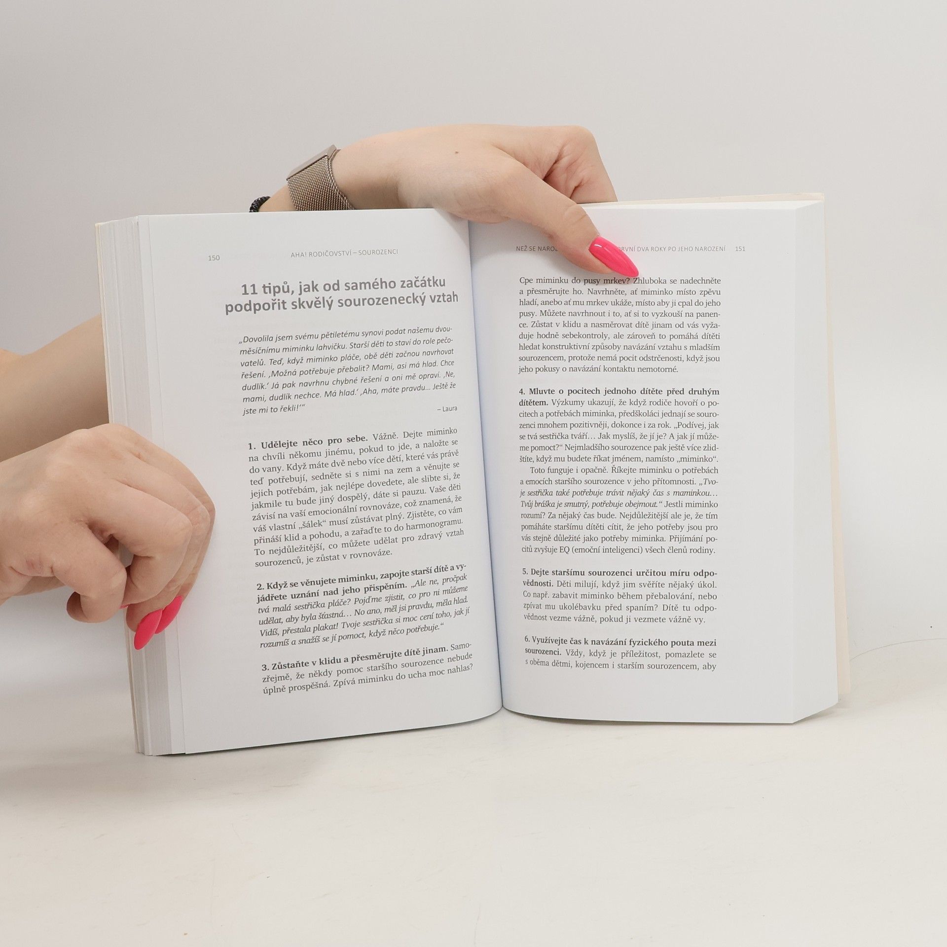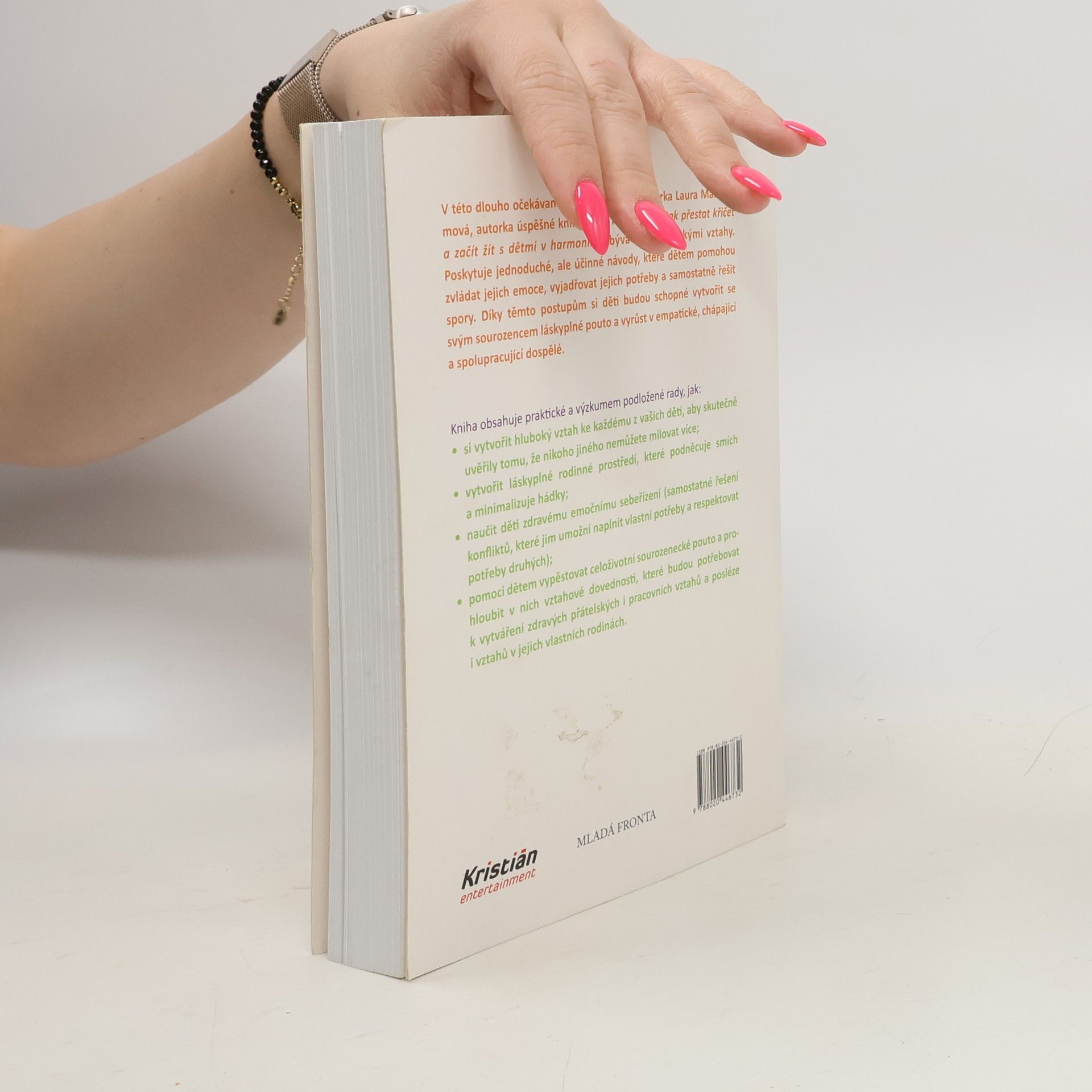 Jak zabránit sporům mezi sourozenci a vychovat z nich přátele na celý život. V této dlouho očekávané knize se známá doktorka Laura Markhamová, autorka úspěšné knihy AHA! Rodičovství: Jak přestat křičet a začít s dětmi žít v harmonii, zabývá sourozeneckými vztahy. Poskytuje jednoduché, ale účinné návody, které dětem pomohou zvládat jejich emoce, vyjadřovat jejich potřeby a samostatně řešit spory. Díky těmto postupům si děti budou schopné vytvořit se svým sourozencem láskyplné pouto a vyrůst v empatické, chápající a spolupracující dospělé. Kniha obsahuje praktické a výzkumem podložené rady, jak: - si vytvořit hluboký vztah ke každému z vašich dětí, aby skutečně uvěřily tomu, že nikoho jiného nemůžete milovat více; - vytvořit láskyplné rodinné prostředí, které podněcuje smích a minimalizuje hádky; - naučit děti zdravému emočnímu sebeřízení (samostatné řešení konfliktů, které jim umožní naplnit vlastní potřeby a respektovat potřeby druhých); - pomoci dětem vypěstovat celoživotní sourozenecké pouto a prohloubit v nich vztahové dovednosti, které budou potřebovat k vytváření zdravých přátelských i pracovních vztahů a posléze i vztahů v jejich vlastních rodinách.