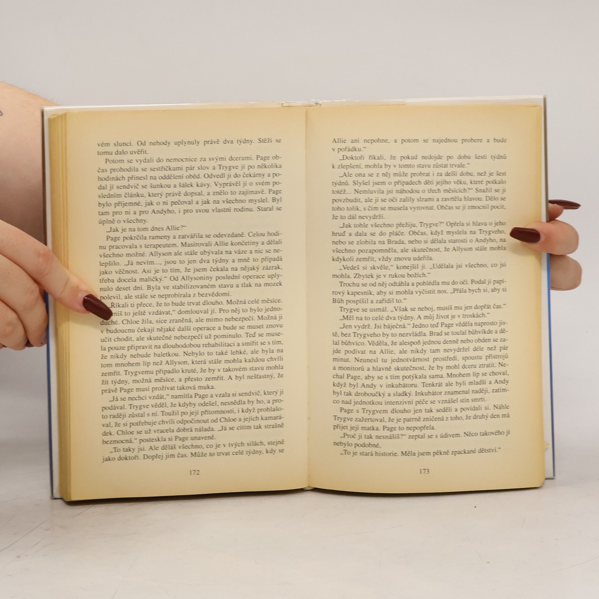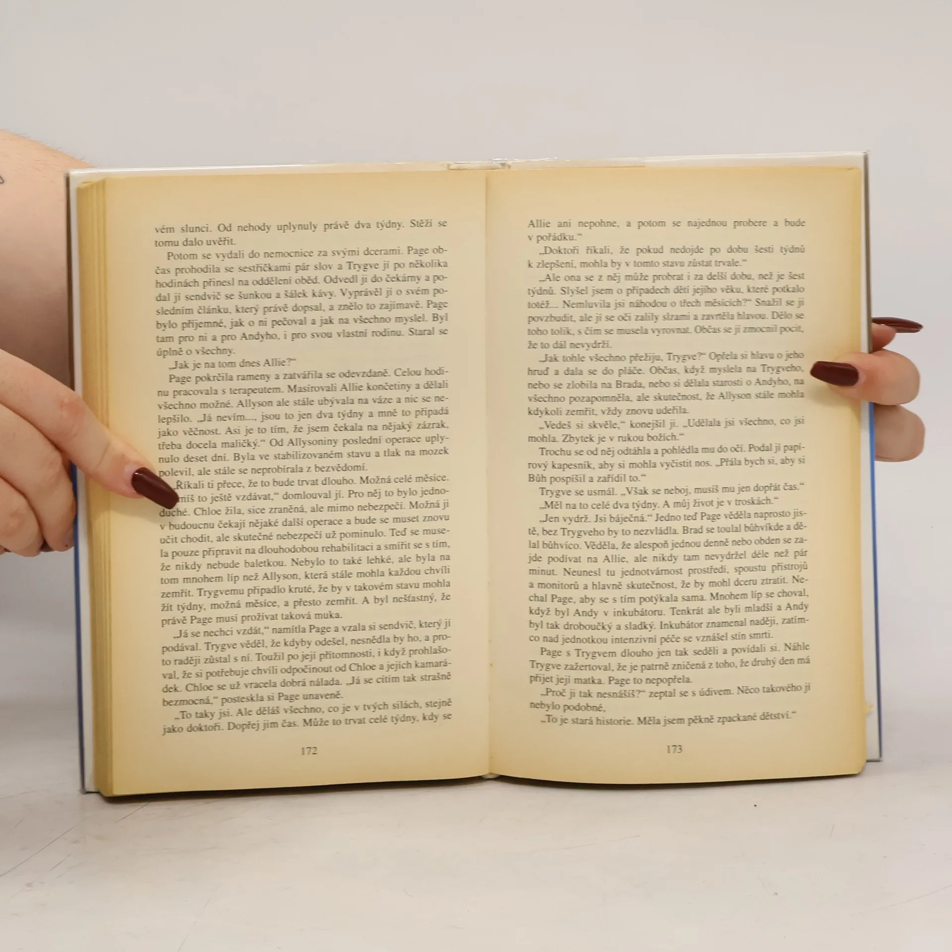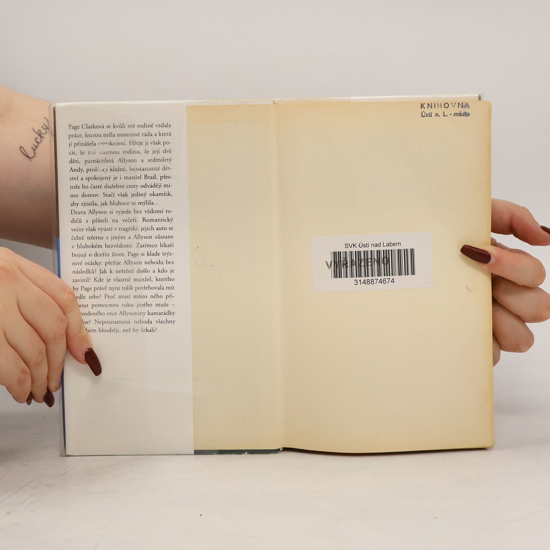 Page Clarková se kvůli rodině vzdala práce, kterou měla nesmírně ráda a která jí přinášela uspokojení. Hřeje jí však pocit, že má šťastnou rodinu, že její dvě děti, patnáctiletá Allyson a sedmiletý Andy, prožívají klidné, bezstarostné dětství a spokojený i manžel Brad, přestože ho časté služební cesty odvádějí mimo domov, stačí však jediný okamžik, aby zjistila, jak hluboce se mýlila. Dcera Allyson si vyjede bez vědomí rodičů s přáteli na večeři. Romantický večer však vyústí v tragédii: jejich auto se čelně střetne s jiným a Allyson zůstane v bezvědomí. Zatímco lékaři bojují o dceřin život, Page si kladě trýznivé otázky: přežije Allyson nehodu bez následků? Jak k neštěstí došlo, kdo ji zavinil. Kde je vlastně manžel, kterého teď Page tak nutně potřebuje právě vedle sebe. Proč musí místo něho příjmout pomocnou ruku jiného muže, rozvedeného otce Allysoniny kamarádky Chloe? Nepoznamená nehoda všechny mnohem hlouběji, než by čekali?