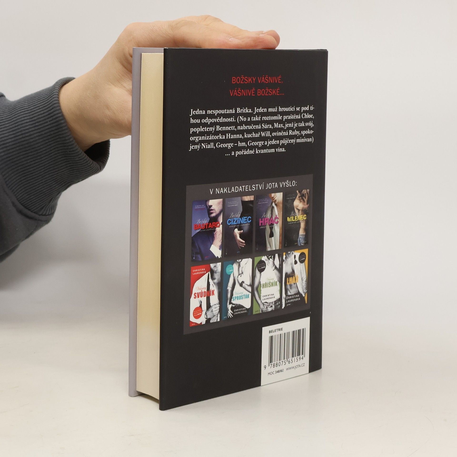 Svérázná Britka a suchar z Bostonu: tak rozdílné povahy jako Pippa a Jensen aby pohledal. Ona je pro každou srandu, on se hroutí pod tíhou odpovědnosti. Řízením osudu se tihle dva setkají na společné dovolené organizované partičkou přátel, kterou věrné čtenářky znají již z předchozích dílů oblíbené série Božský. Putování po vinicích je pro Pippu, jež se právě vzpamatovává z nechutného rozchodu, vítanou příležitostí, jak na všechno zapomenout. Jensen se výletu účastní tak trochu z donucení a jen doufá, že vína bude dost, aby tu nudu přežil. Nuda se však nekoná. Celý výlet se změní v bláznivý sled událostí a zprvu improvizovaný vztah dvou cizích lidí postupně přeroste v hlubokou vášeň. V závěrečném dílu série Božský se uzavírají osudy hrdinů, které si čtenářky Christiny Laurenové tolik oblíbili. I v této knize najdeme vše, čím si autorky své čtenáře tak podmanily: drama i humor, vtipné dialogy, lásku pošetilou i vášnivou a zejména sex, který si hrdinové románu umí náležitě vychutnat.