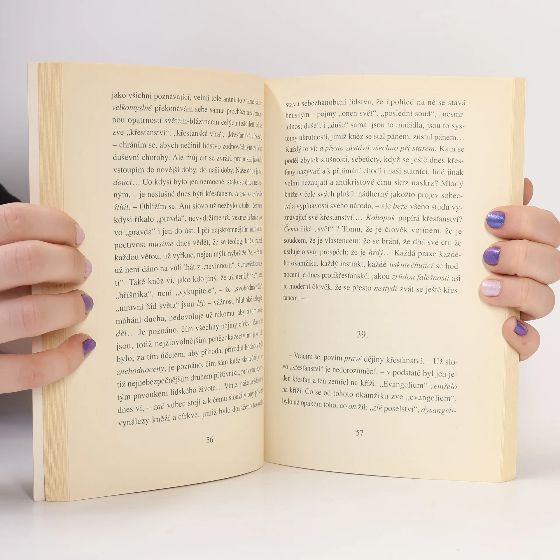 Podtitul: "Přehodnocení všech hodnot (fragment): Předmluva a Kniha první" Německý voluntarista odhaluje podstatu křesťanství a definuje principy nového hodnotového systému. Křesťanství sjednocuje všechno protikulturní, úpadkové, chorobné a protivědecké - zosobňuje pouhou "mstivost" vůči všemu velikému. Radikální kritika směřuje k popření významu existence křesťanství. Z křesťanské éry musí vzejít nová doba, jež prostřednictvím "přehodnocení všech hodnot" zrodí zcela revoluční hodnotovou koncepci, opírající se o ocenění boha života. Razantní odmítnutí křesťanství formuje zcela originální systém hodnot.