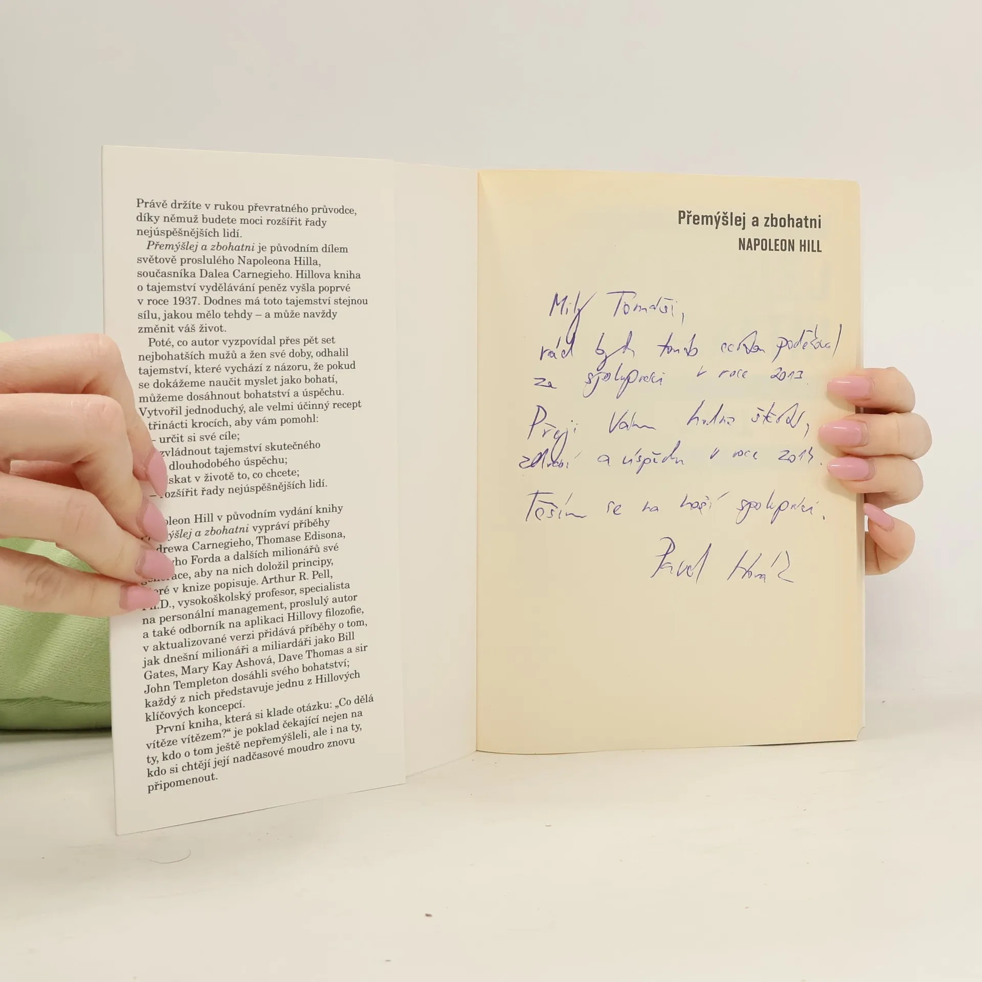 Přemýšlej a zbohatni je převratný průvodce, díky němuž budete moci rozšířit řady nejúspěšnějších lidí. Přemýšlej a zbohatni je původním dílem světově proslulého Napoleona Hilla, současníka Dalea Carnegieho. Hillova kniha o tajemství vydělávání peněz vyšla poprvé v roce 1937. Dodnes má toto tajemství stejnou sílu, jakou mělo tehdy - a může navždy změnit váš život