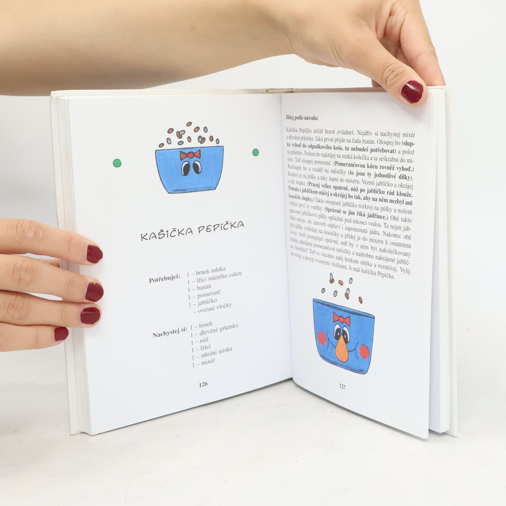 Knížka, která je určena nejen malým čtenářům, ale i jejich maminkám, babičkám a rovněž všem těm, kteří si dokáží v dnešní uspěchané době najít volnou chvilku a strávit ji ve společnosti svých dětí. V současnosti je tato publikace zcela ojedinělá, a to hned ze dvou důvodů. Za prvé svým zpracováním a za druhé svým obsahem. Zpracována je do čtyř okruhů, od těch nejjednodušších, které zvládnou malí kuchaři sami, až po náročné, kde by byla vhodná přítomnost dospělé osoby. Obsahem nejsou, jak by se dalo očekávat, pouhé atraktivní pokrmy, nýbrž jednoduché nápadité recepty z běžně dostupných surovin. Na své si přijde skutečně každý. Především však bylo autorčiným záměrem vyprovokovat u našich nejmenších touhu po poznání a vyzkoušení něčeho nového, užitečného, po snaze něco sám dokázat. Proto schválně použila lidovou stylizaci tak, aby měl malý čtenář možnost postupovat krok po krůčku a aby jasná srozumitelnost napomohla ke zdárnému „kuchaření".