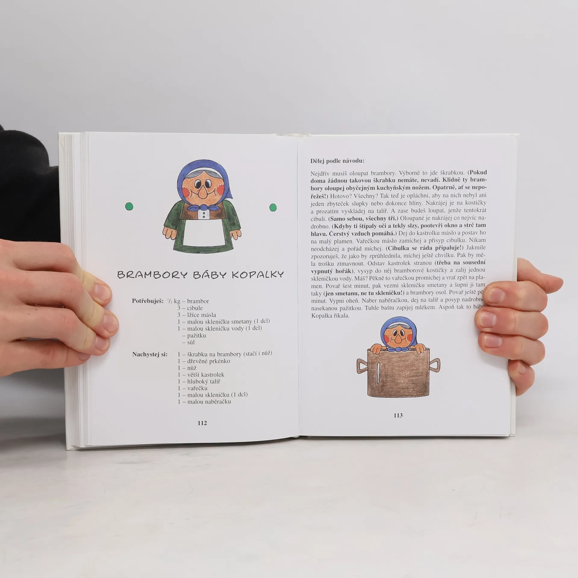 Knížka, která je určena nejen malým čtenářům, ale i jejich maminkám, babičkám a rovněž všem těm, kteří si dokáží v dnešní uspěchané době najít volnou chvilku a strávit ji ve společnosti svých dětí. V současnosti je tato publikace zcela ojedinělá, a to hned ze dvou důvodů. Za prvé svým zpracováním a za druhé svým obsahem. Zpracována je do čtyř okruhů, od těch nejjednodušších, které zvládnou malí kuchaři sami, až po náročné, kde by byla vhodná přítomnost dospělé osoby. Obsahem nejsou, jak by se dalo očekávat, pouhé atraktivní pokrmy, nýbrž jednoduché nápadité recepty z běžně dostupných surovin. Na své si přijde skutečně každý. Především však bylo autorčiným záměrem vyprovokovat u našich nejmenších touhu po poznání a vyzkoušení něčeho nového, užitečného, po snaze něco sám dokázat. Proto schválně použila lidovou stylizaci tak, aby měl malý čtenář možnost postupovat krok po krůčku a aby jasná srozumitelnost napomohla ke zdárnému „kuchaření".