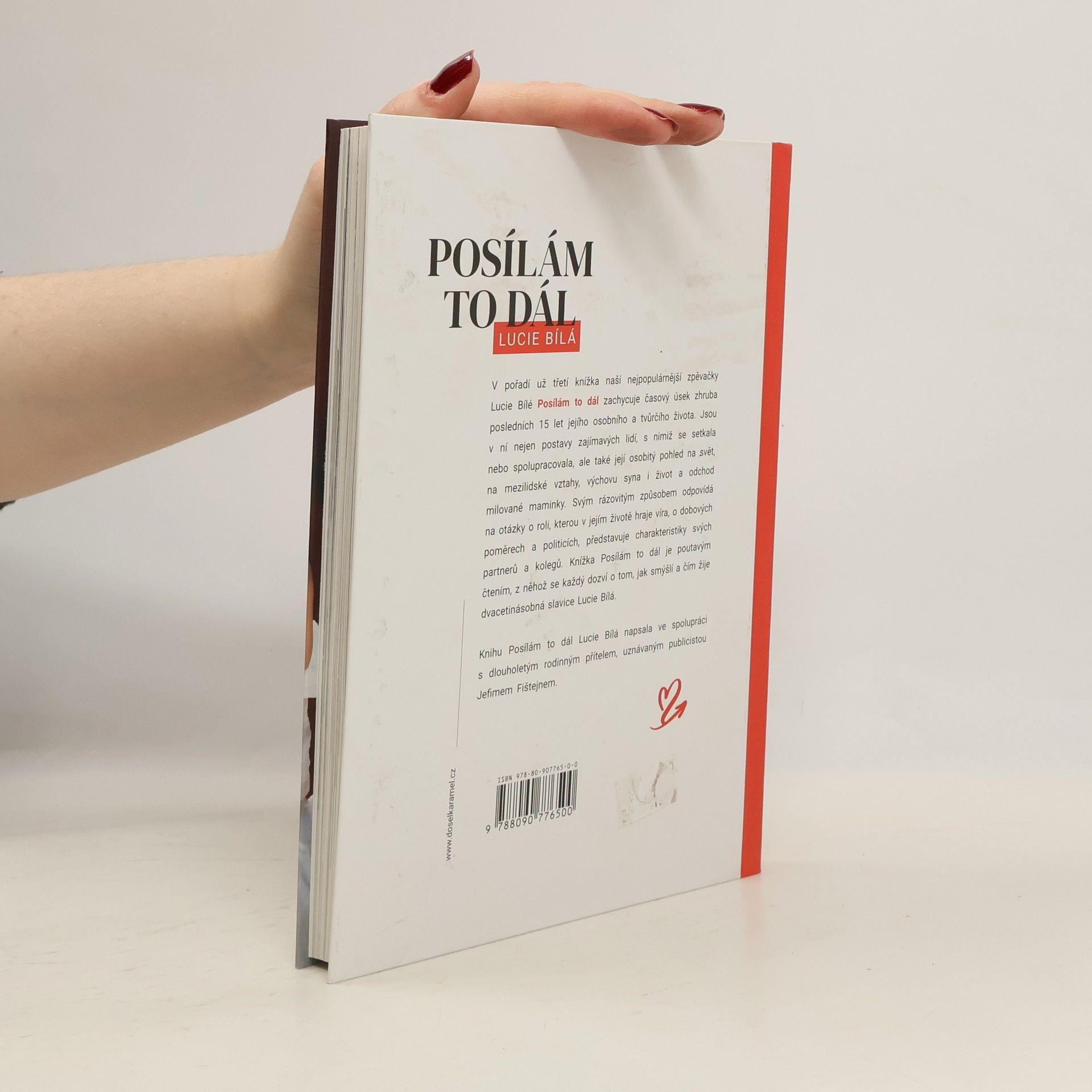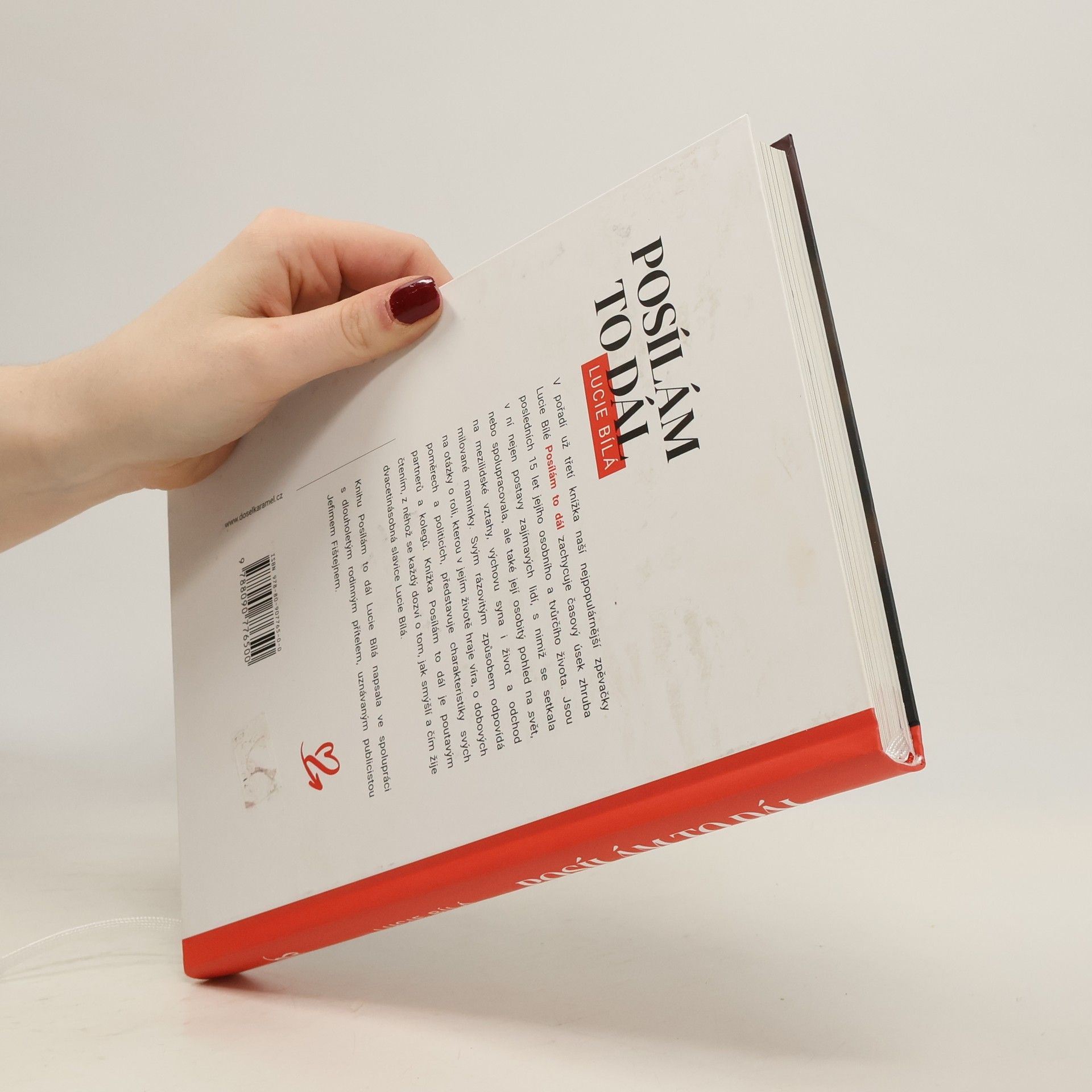 V pořadí už třetí knížka naší nejpopulárnější zpěvačky Lucie Bílé Posílám to dál zachycuje časový úsek zhruba posledních 15 let jejího osobního a tvůrčího života. Jsou v ní nejen postavy zajímavých lidí, s nimiž se setkala nebo spolupracovala, ale také její osobitý pohled na svět, na mezilidské vztahy, výchovu syna, život a smrt milované maminky. Svým rázovitým způsobem odpovídá na otázky o roli, kterou v jejím životě hraje víra, o dobových poměrech a politicích, představuje charakteristiky svých partnerů a kolegů. Knížka Posílám to dál je poutavým čtením, z něhož se každý dozví o tom, jak smýšlí a čím žije dvacetinásobná slavice Lucie Bílá. Knihu Lucie Bílá napsala ve spolupráci s dlouholetým rodinným přítelem, uznávaným publicistou Jefmem Fištejnem.