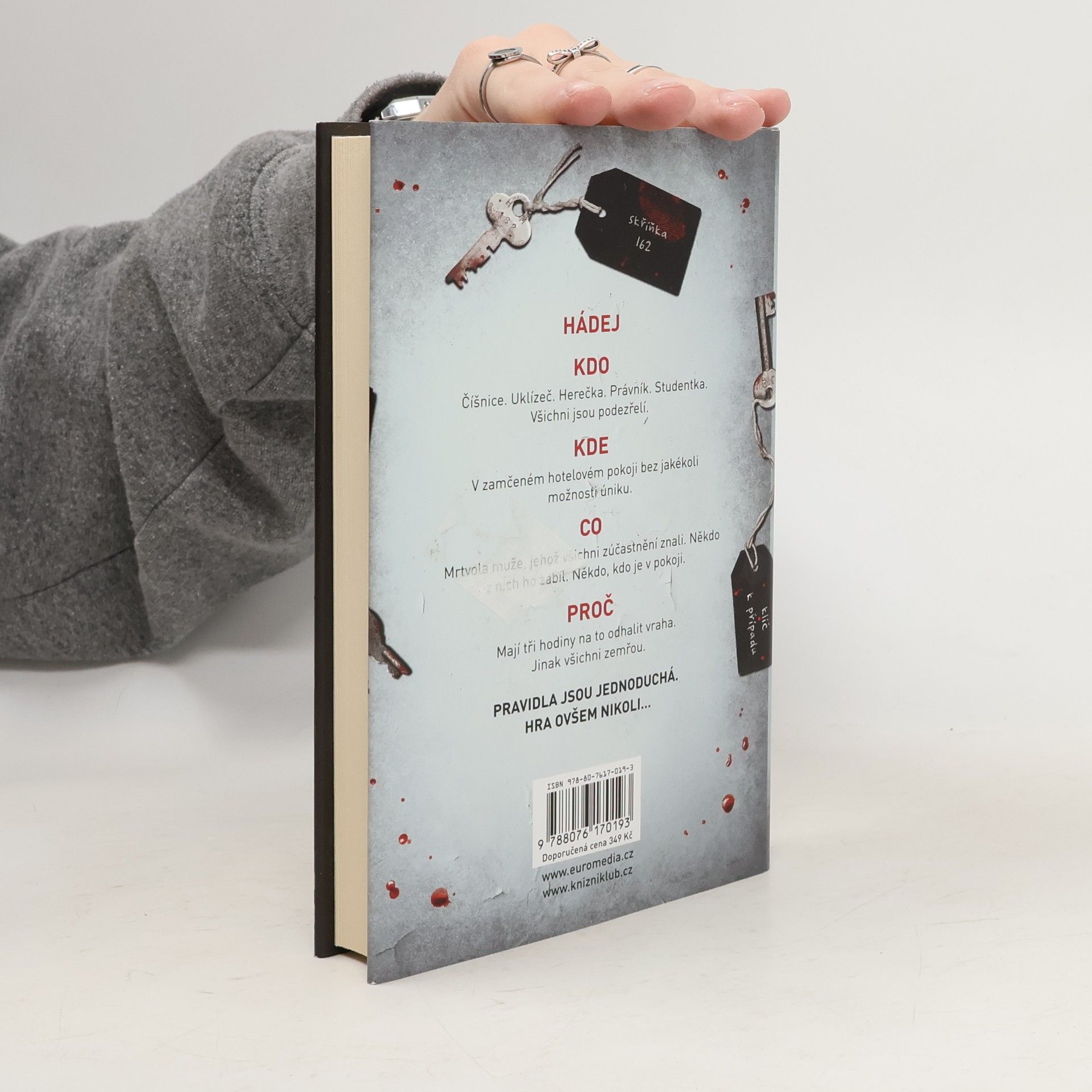 Televizní moderátor. Číšnice. Uklízeč. Právník. Herečka. Studentka. Ti všichni jsou zamčení v jednom hotelovém pokoji s mrtvolou muže, jehož každý z nich nějak znal. Ani jeden z nich netuší, jak se dostal dovnitř. Nikdo z nich neví, jak se dostat ven. A jeden z nich je vrah. Mají tři hodiny na to, aby ho odhalili, jinak všichni zemřou. Pravidla jsou jednoduchá, ta hra však nikoliv...