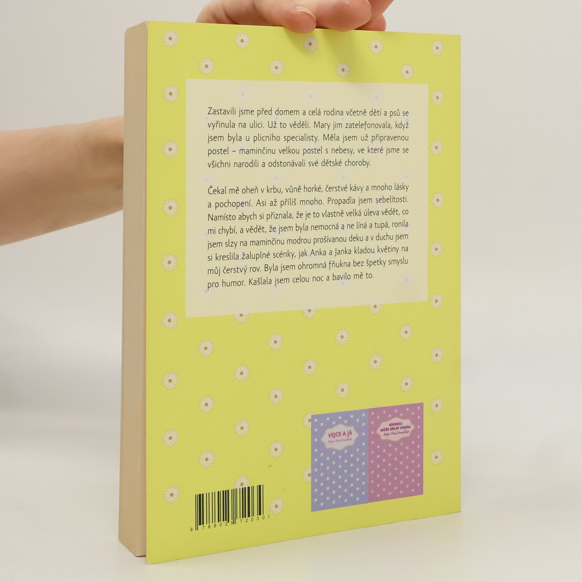 Zastavili jsme před domem a celá rodina včetně dětí a psů se vyřinula na ulici. Už to věděli. Mary jim zatelefonovala, když jsem byla u plicního specialisty. Měla jsem už připravenou postel - maminčinu velkou postel s nebesy, ve které jsme se všichni narodili a odstonávali své dětské choroby. Čekal mě oheň v krbu, vůně horké, čerstvé kávy a mnoho lásky a pochopení. Asi až příliš mnoho. Propadla jsem sebelítosti. Namísto abych si přiznala, že je to vlastně velká úleva vědět, co mi chybí, a vědět, že jsem byla nemocná a ne líná a tupá, ronila jsem slzy na maminčinu modrou prošívanou deku a v duchu jsem si kreslila žaluplné scénky, jak Anka a Janka kladou květiny na můj čerstvý rov. Byla jsem ohromná fňukna bez špetky smyslu pro humor. Kašlala jsem celou noc a bavilo mě to.