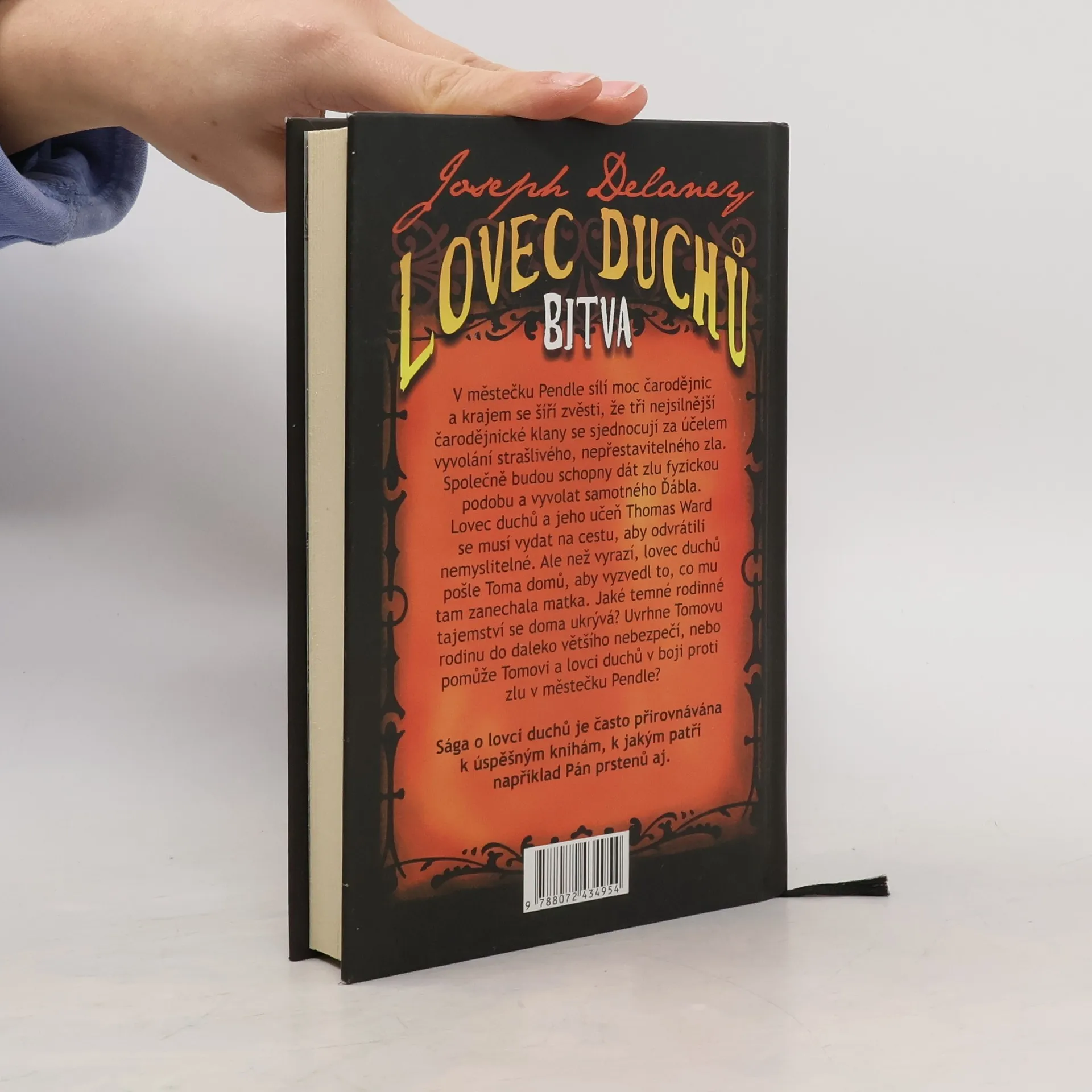 V městečku Pendle sílí moc čarodějnic a krajem se šíří zvěsti, že tři nejsilnější čarodějnické klany se sjednocují za účelem vyvolání strašlivého, nepřestavitelného zla. Společně budou schopny dát zlu fyzickou podobu a vyvolat samotného ďábla. Lovec duchů a jeho učeň Thomas Ward se musí vydat na cestu, aby odvrátili nemyslitelné. Ale než vyrazí, lovec duchů pošle Toma domů, aby vyzvedl to, co mu tam zanechala matka. Jaké temné rodinné tajemství se doma ukrývá? Uvrhne Tomovu rodinu do daleko většího nebezpečí, či pomůže Tomovi a lovci duchů Spookovi v boji proti zlu v městečku Pendle? Sága o Lovci duchů je často přirovnávána k takovým úspěšným knihám, jako je např. Pán prstenů.