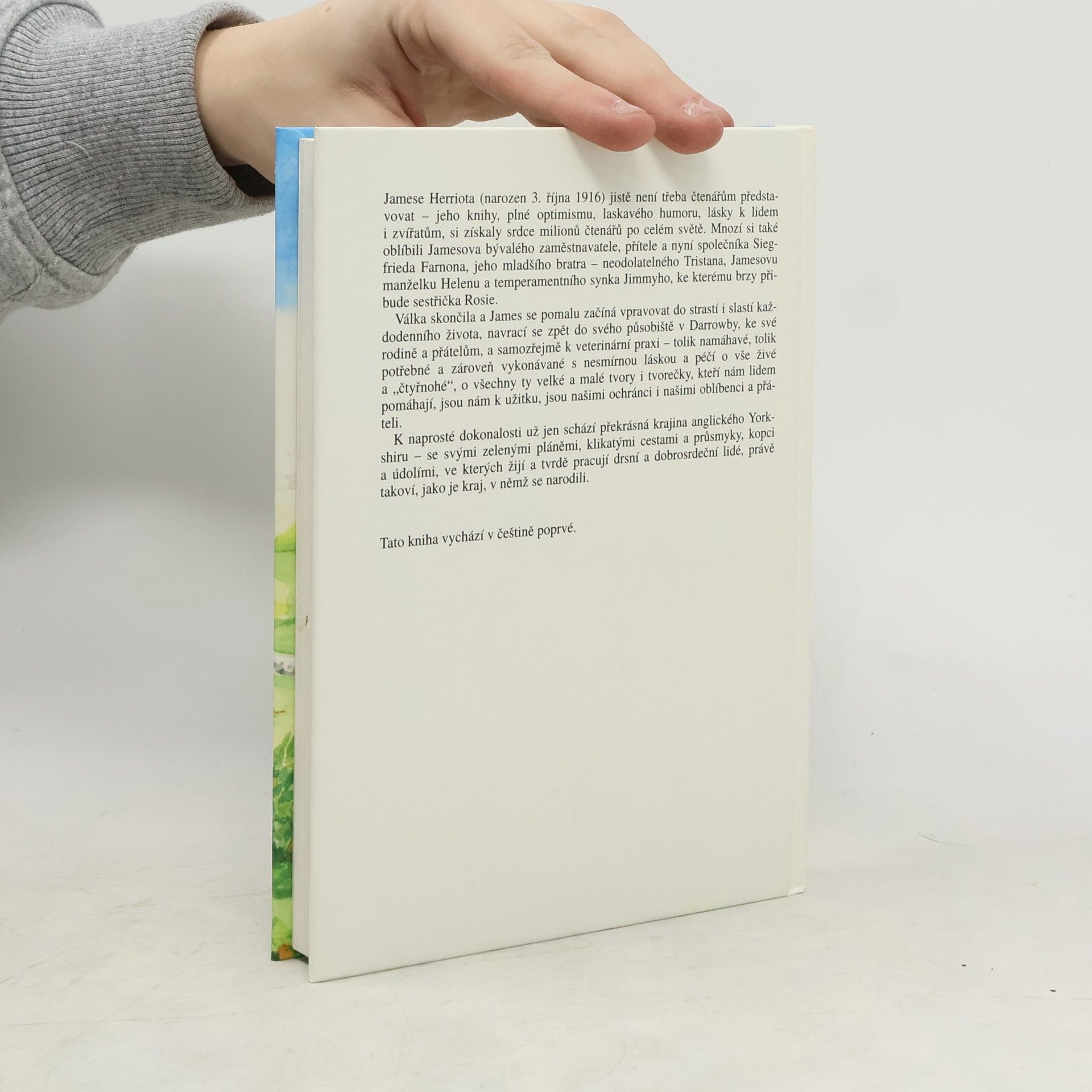 Jamese Herriota jistě není třeba čtenářům představovat - jeho knihy plné optimismu, laskavého humoru a lásky k lidem i zvířatům si získaly srdce miliónů čtenářů po celém světě. Mnozí si také oblíbili Jamesova bývalého zaměstnavatele, přítele a nyní společníka Siegfrieda Farnona, jeho mladšího bratra - neodolatelného Tristana, Jamesovu manželku Helenu a temperamentního synka Jimmyho, ke kterému brzy přibude sestřička Rosie. Druhá světová válka skončila a James se pomalu začíná vpravovat do strastí i slastí každodenního života, navrací se zpět do svého působiště v Darrowby, ke své rodině a přátelům, a samozřejmě k veterinární praxi - tolik namáhavé, tolik potřebné a zároveň vykonávané s nesmírnou láskou a péčí o vše živé a "čtyřnohé", o všechny ty velké a malé tvory i tvorečky, kteří nám lidem pomáhají, jsou nám k užitku, jsou našimi ochránci i našimi oblíbenci a přáteli. K naprosté dokonalosti už schází jen překrásná krajina anglického Yorkshiru - se svými zelenými pláněmi, klikatými cestami a průsmyky, kopci a údolími, ve kterých žijí a tvrdě pracují drsní a dobrosrdeční lidé, právě takoví, jako je kraj, v němž se narodili. Vydavatel: Ametyst, Praha.... celý text