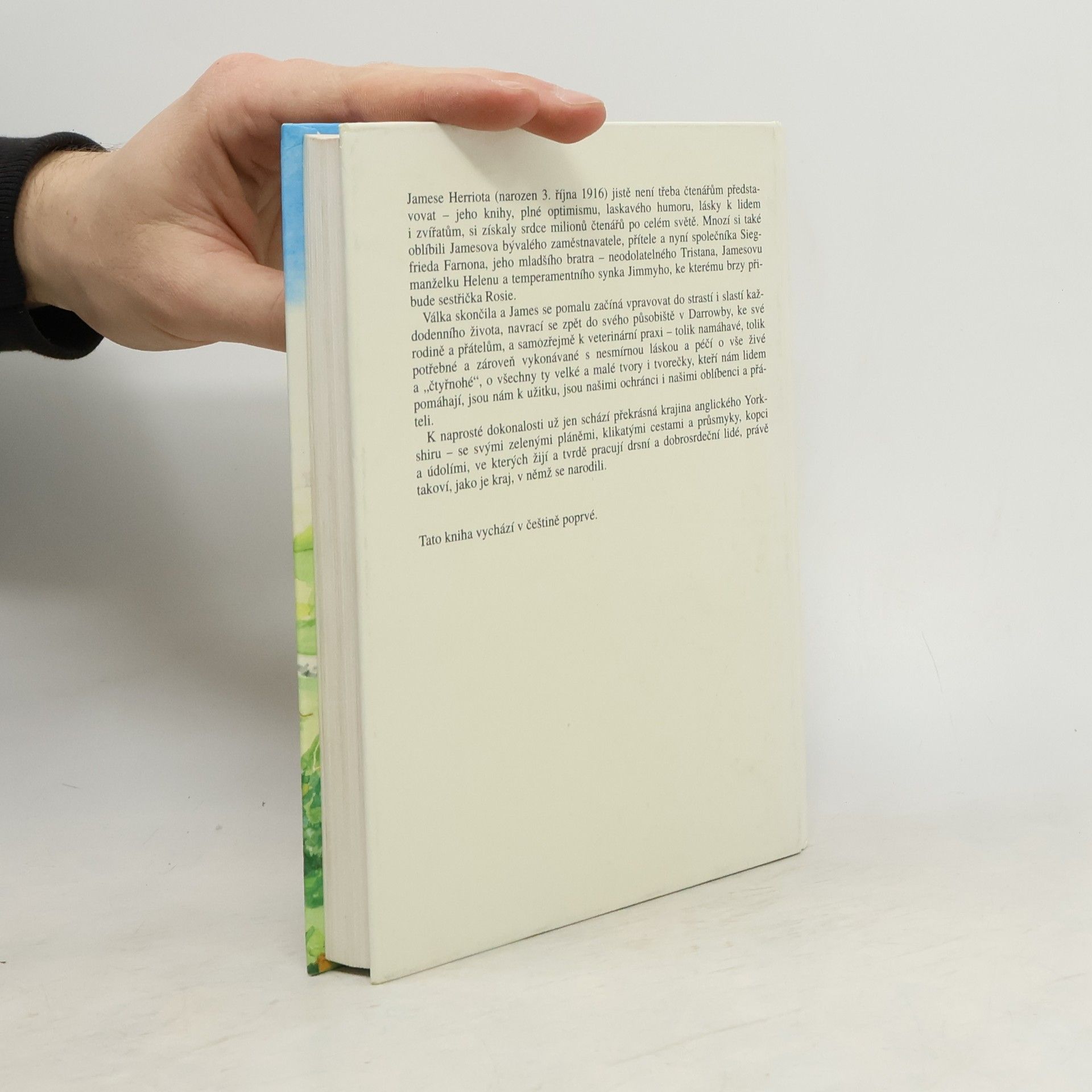 Jamese Herriota jistě není třeba čtenářům představovat - jeho knihy plné optimismu, laskavého humoru a lásky k lidem i zvířatům si získaly srdce miliónů čtenářů po celém světě. Mnozí si také oblíbili Jamesova bývalého zaměstnavatele, přítele a nyní společníka Siegfrieda Farnona, jeho mladšího bratra - neodolatelného Tristana, Jamesovu manželku Helenu a temperamentního synka Jimmyho, ke kterému brzy přibude sestřička Rosie. Druhá světová válka skončila a James se pomalu začíná vpravovat do strastí i slastí každodenního života, navrací se zpět do svého působiště v Darrowby, ke své rodině a přátelům, a samozřejmě k veterinární praxi - tolik namáhavé, tolik potřebné a zároveň vykonávané s nesmírnou láskou a péčí o vše živé a "čtyřnohé", o všechny ty velké a malé tvory i tvorečky, kteří nám lidem pomáhají, jsou nám k užitku, jsou našimi ochránci i našimi oblíbenci a přáteli. K naprosté dokonalosti už schází jen překrásná krajina anglického Yorkshiru - se svými zelenými pláněmi, klikatými cestami a průsmyky, kopci a údolími, ve kterých žijí a tvrdě pracují drsní a dobrosrdeční lidé, právě takoví, jako je kraj, v němž se narodili. Vydavatel: Ametyst, Praha.... celý text