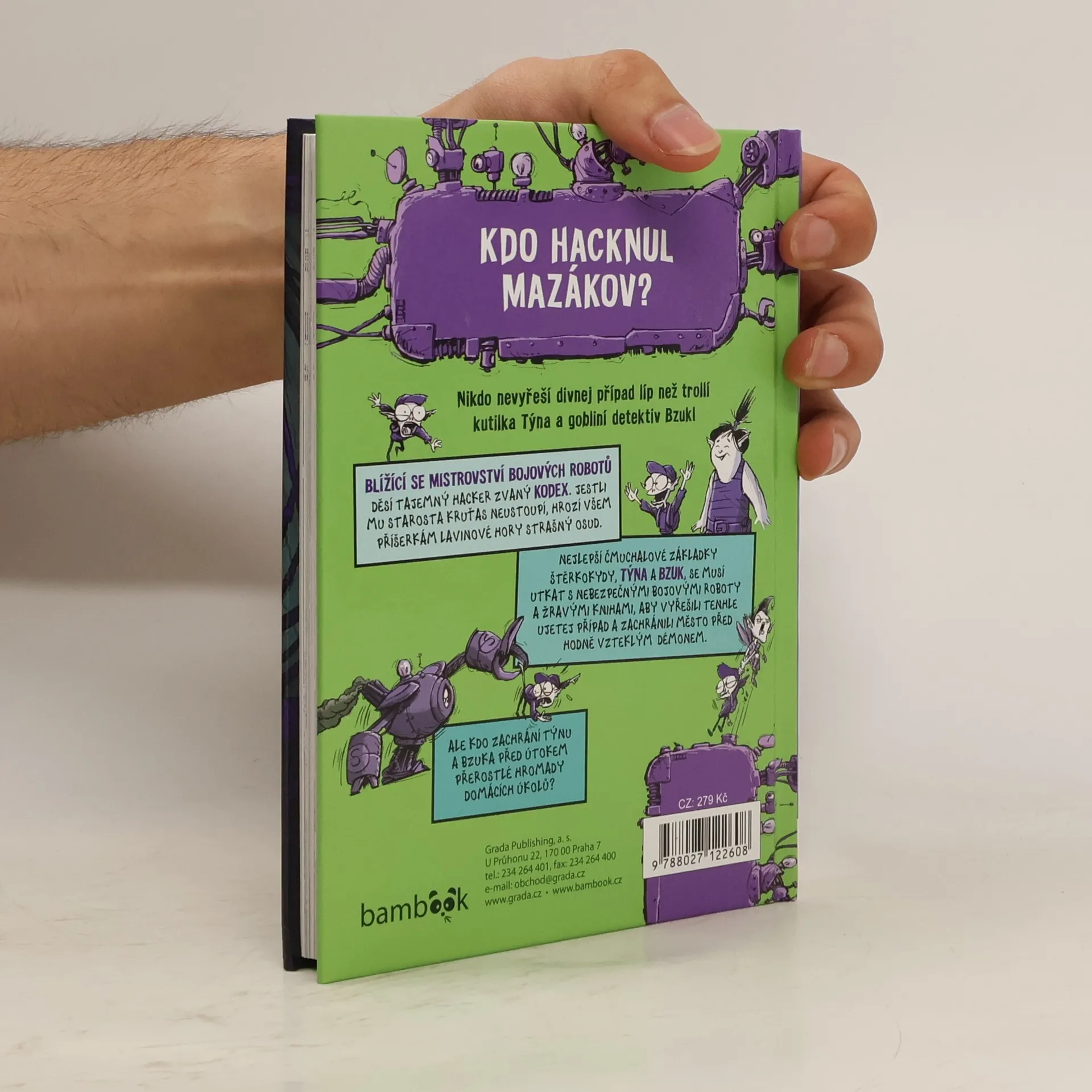 Nikdo nevyřeší divnej případ líp než trollí kutilka Týna a gobliní detektiv Bzuk! Blížící se Mistrovství bojových robotů děsí tajemný hacker zvaný Kodex. Jestli mu starosta Kruťas neustoupí, hrozí všem příšerkám Lavinové hory strašný osud. Nejlepší čmuchalové základky Štěrkokydy, Týna a Bzuk, se musí utkat s nebezpečnými bojovými roboty i žravými knihami, aby vyřešili tenhle ujetej případ a zachránili město před hodně vzteklým démonem. Ale kdo zachrání Týnu a Bzuka před útokem přerostlé hromady domácích úkolů?