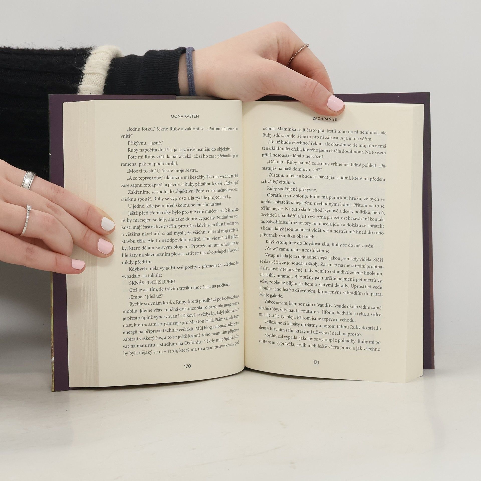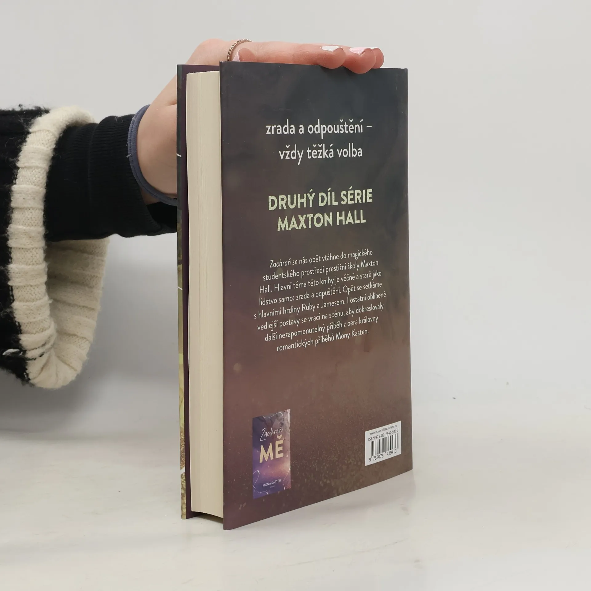 Zachraň se nás opět vtáhne do magického studentského prostředí prestižní školy Maxton Hall. Hlavní téma této knihy je věčné a staré jako lidstvo samo: zrada a odpuštění. Opět se setkáme s hlavními hrdiny Ruby a Jamesem. I ostatní oblíbené vedlejší postavy se vrací na scénu, aby dokreslovaly další nezapomenutelný příběh z pera královny romantických příběhů Mony Kasten. Vítejte do světa prestižní školy Maxton Hall, místa dramatických prvních lásek, romantických studentských let a napínavých okolností, které obklopují Ruby a Jamese. Co se stane, když Ruby musí těžce odpouštět zradu a Jamesovi se převrátí svět vzhůru nohama mnoha nečekanými událostmi? Blíží se studium na Oxfordu... Na pozadí příběhu hlavních hrdinů se odvíjejí osudy jejich sourozenců - těhotné Jamesovy sestry Lýdie a vtipné a sebevědomé Rubyiny sestry Ember. Všichni zažívají své první lásky, každá je jiná, ale vlastně jsou všechny stejně opravdové. Znovu se setkáme s organizačním výborem a užijeme si s ním velkolepé plesy.