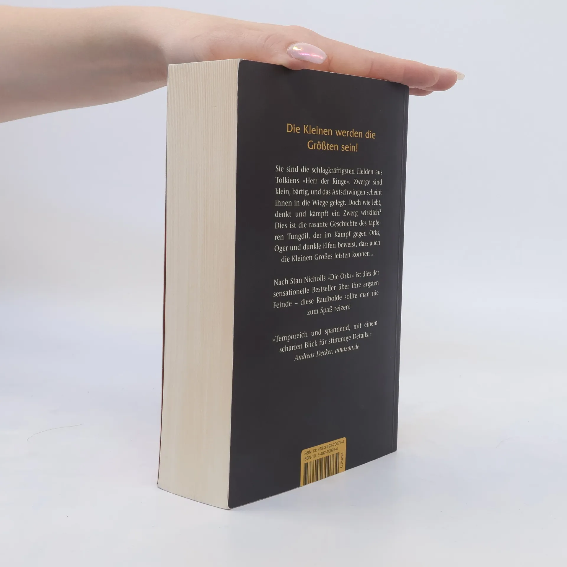 Sie sind die schlagkräftigsten Helden aus J. R. R. Tolkiens »Herr der Ringe«: Zwerge sind klein, bärtig, und das Axtschwingen scheint ihnen in die Wiege gelegt. Doch wie lebt, denkt und kämpft ein Zwerg wirklich? Dies ist die rasante Geschichte des tapferen Tungdil, der im Kampf gegen Orks, Oger und dunkle Elfen beweist, dass auch die Kleinen Großes leisten können … Nach Stan Nicholls »Die Orks« ist dies der sensationelle Bestseller über ihre ärgsten Feinde – diese Raufbolde sollte man nie zum Spaß reizen!
