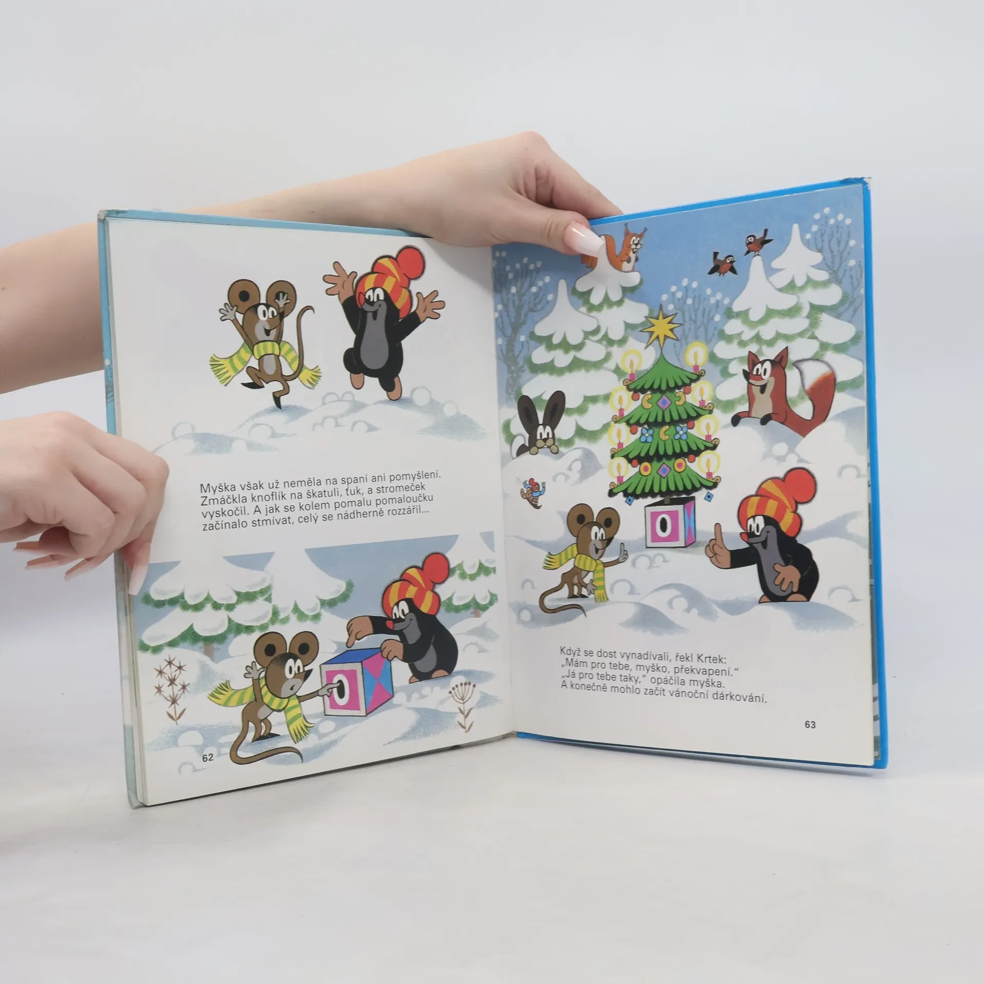 Tentokrát nabízíme souborné vydání dvou zimních dobrodružství. Nejprve získá Krtek nového kamaráda sněhuláka, s nímž si užívá zábavu na sněhu, ale kterého nakonec zachraňuje před teplými slunečními paprsky. Sněhulák přečká teplé dny vysoko v horách, kde sníh nikdy nemizí, a když se kamarádi setkají znovu, přijdou mimo jiné na slovo Vánoce, ale sněhulák je slyší poprvé, a tak mu Krtek vypráví… V druhém příběhu chystá vánoční překvapení pro kamarády v lese a dost mu překáží protivná a nenechavá vrána. Ale náš hrdina si opět poradí. Přátelům se má pomáhat a také dělat radost…