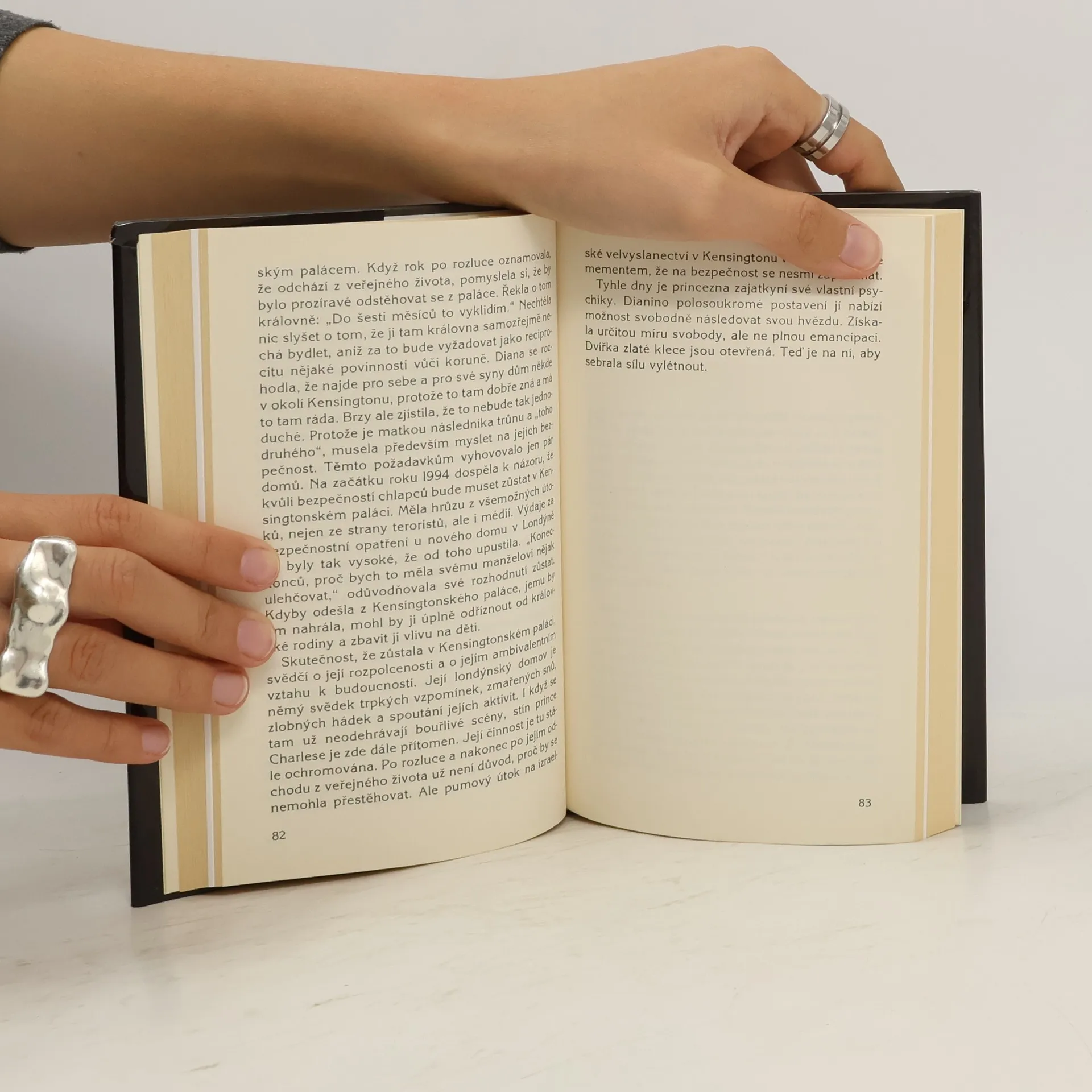 Pokračování knihy Diana: Její pravdivý příběh. S pomocí několika nejbližších přátel a rádců z Walesu mohl Andrew Morton, autor knihy Diana: Její pravdivý příběh, opět nahlednout za drapérie oficiální královské propagandy a vylíčit, jak se Diana, jež se stala princeznou dříve, než dosáhla dospělosti, nyní učí být paní vlastího osudu, a nikoli jen palácovou loutkou. Morton odhaluje spory a intriky, které stály v pozadí rozluky s Charlesem, a tlumočí Dianiny osobní názory na odchod z veřejného života, na možnost nového manželství, na muže, které v životě potkala, i na výchovu prince Williama pro jeho budoucí královskou úlohu.