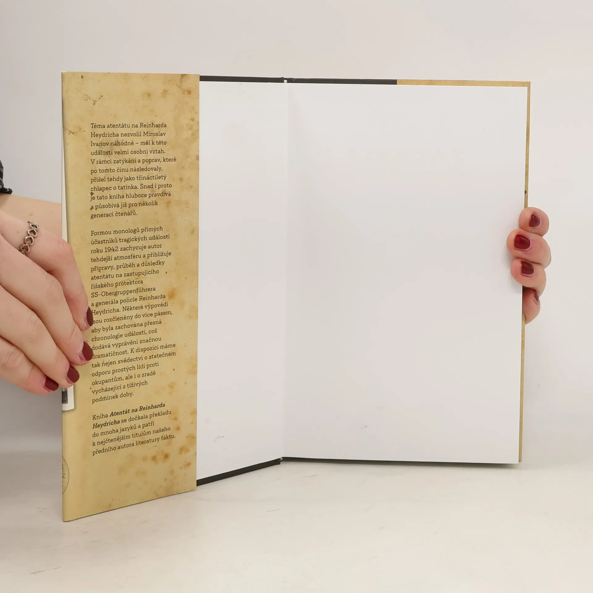 Zevrubný popis atentátu na zastupujícího říšského protektora Reinharda Heydricha. Akci provedli v květnu 1942 čeští výsadkáři Operace Anthropoid, vyslaní z Anglie. Tento hrdinský čin rozběsnil Hitlera a vyvolal kruté represe nacistického režimu. Hodnocení atentátu a jeho následků se v pozdějších historických analýzách stalo předmětem sporu a dosud vzbuzuje emoce. Autor Miroslav Ivanov své zkoumání celé události obohatil o nové skutečnosti.