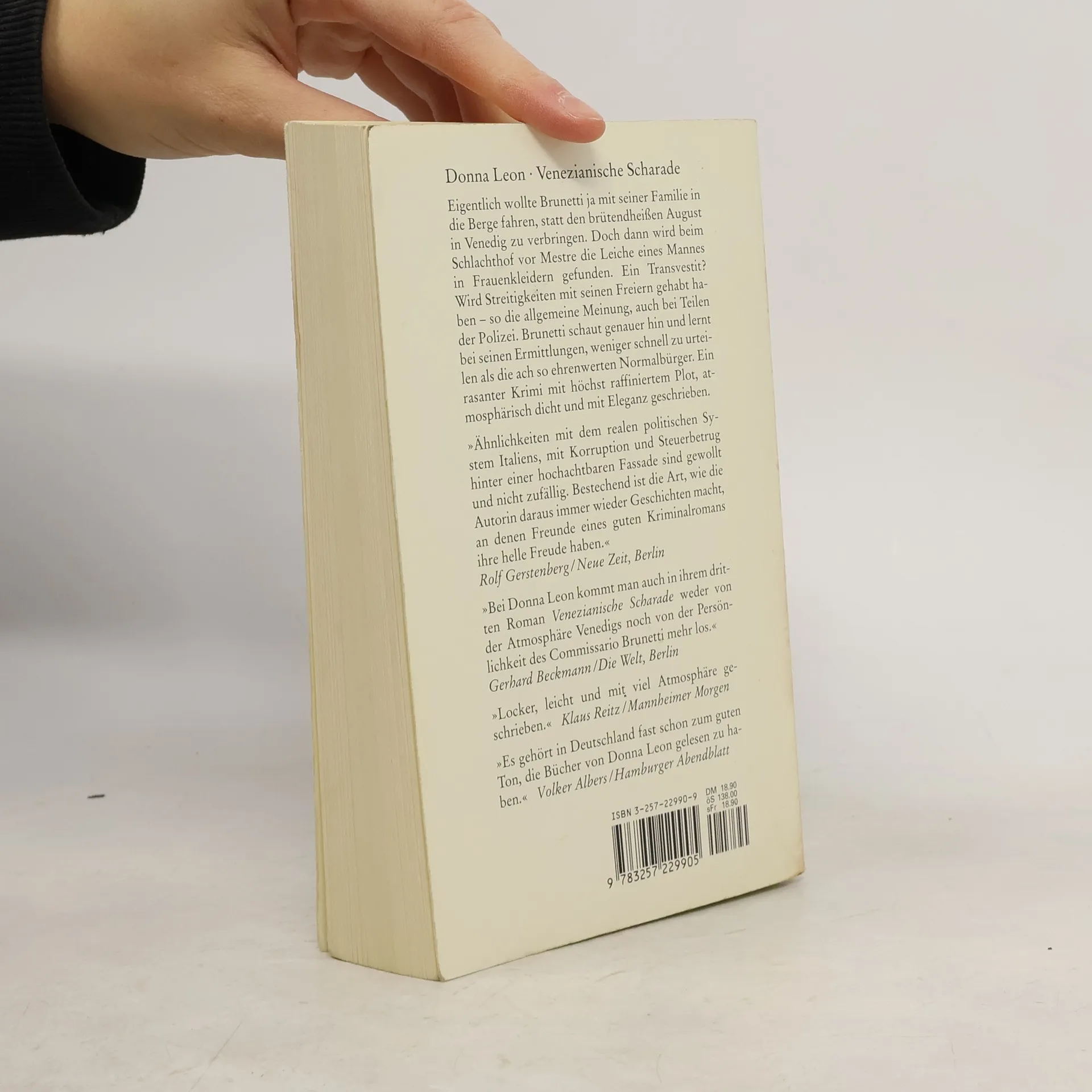 Eigentlich wollte Brunetti mit seiner Familie in die Berge fahren. Doch dann wird vor Mestre die Leiche eines Mannes in Frauenkleidern gefunden. Ein Transvestit? Wird Streitigkeiten mit seinen Freiern gehabt haben ­ so die allgemeine Meinung, auch bei der Polizei. Brunetti schaut genauer hin und lernt bei seinen Ermittlungen, weniger schnell zu urteilen als die ach so ehrenwerten Normalbürger. "