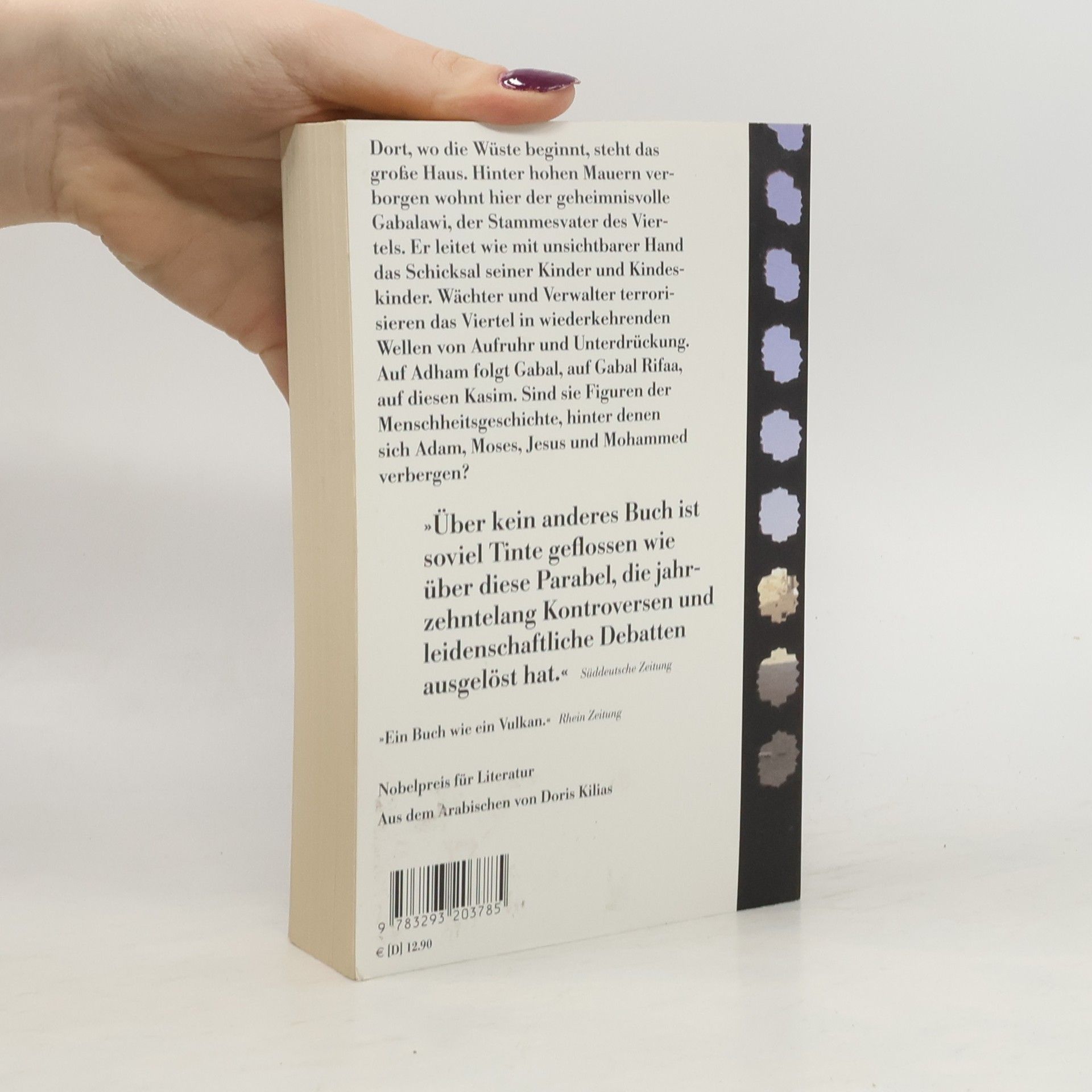 Am Ende der Straße, dort, wo die Wüste beginnt, steht das große Haus. Hinter hohen Mauern in einem paradiesischen Garten wohnt hier der geheimnisvolle Gabalawi, der Stammesvater des Viertels. Seit undenklichen Zeiten hat ihn niemand mehr gesehen. Dennoch leitet er wie mit unsichtbarer Hand das Schicksal seiner Kinder und Kindeskinder.