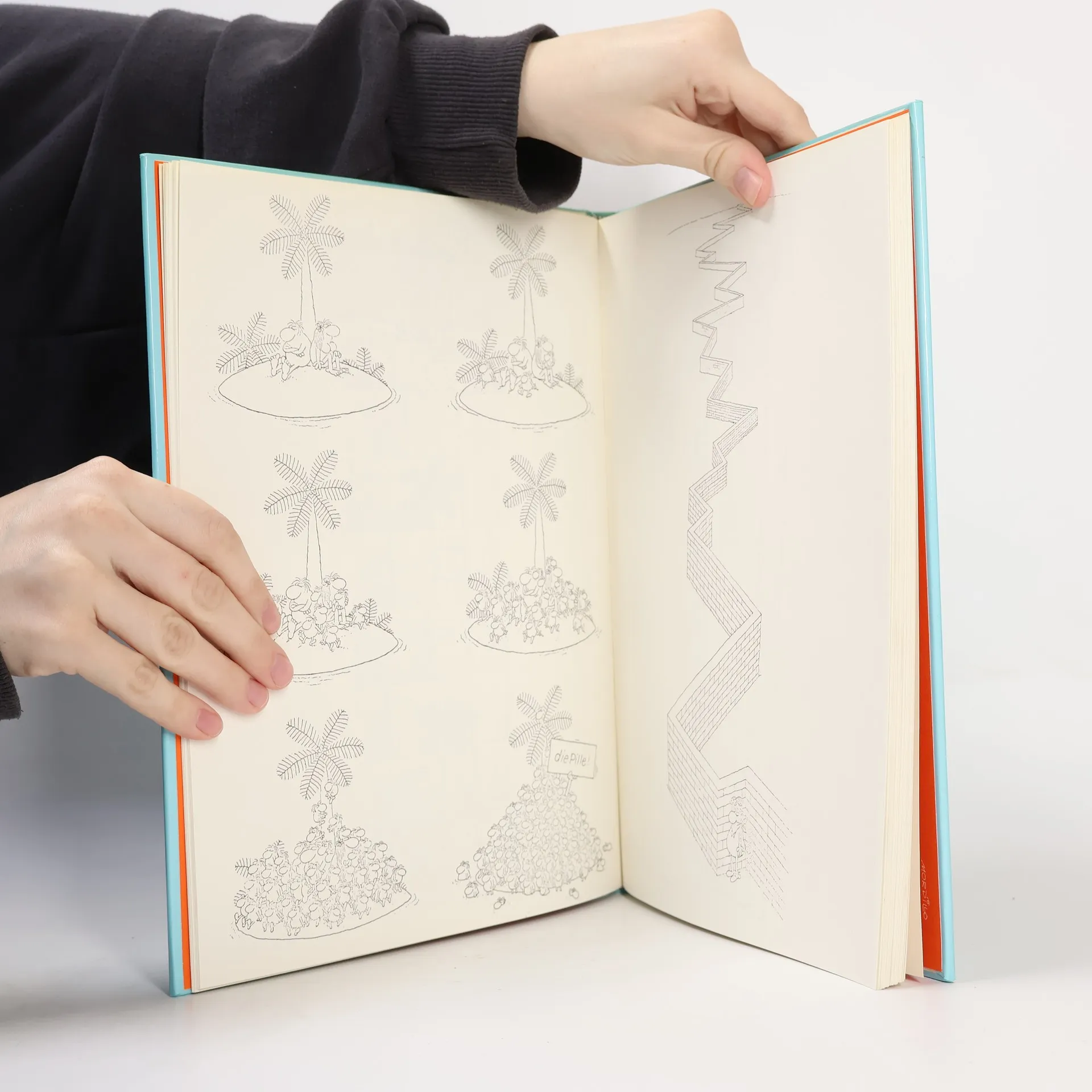Frage: "Was ist Humor?" Antwort des in Paris lebenden Argentiniers Guillermo Mordillo: "Humor ist der Geist, der inmitten des ewigen Lebenstanzes Pirouetten dreht." In seinen Cartoons kommt Mordillo ganz ohne derartige Erklärungen aus; sie haben nie eine Text-Unterschrift. Man versteht sie ohne Worte, und der Roman (ob Tragödie oder Komödie), den sie mit einem Minimum an Strichen erzählen, verschlägt einem die Sprache: man gerät ins Meditieren, Träumen und bricht dann oft in schallendes Gelächter aus. Eines der Hauptthemen Mordillos ist auch in dieser vielseitigen Sammlung der ständige, triebbetonte Kampf der Geschlechter, er wird hier ausgetragen von dickbäuchigen, knollennasigen Figürchen, die uns eine nicht ganz heile, aber sehr komische Welt zeigen - in der es sogar Beispiele stillen Heldentums gibt und hier und da auch die blaue Blume der Romantik.