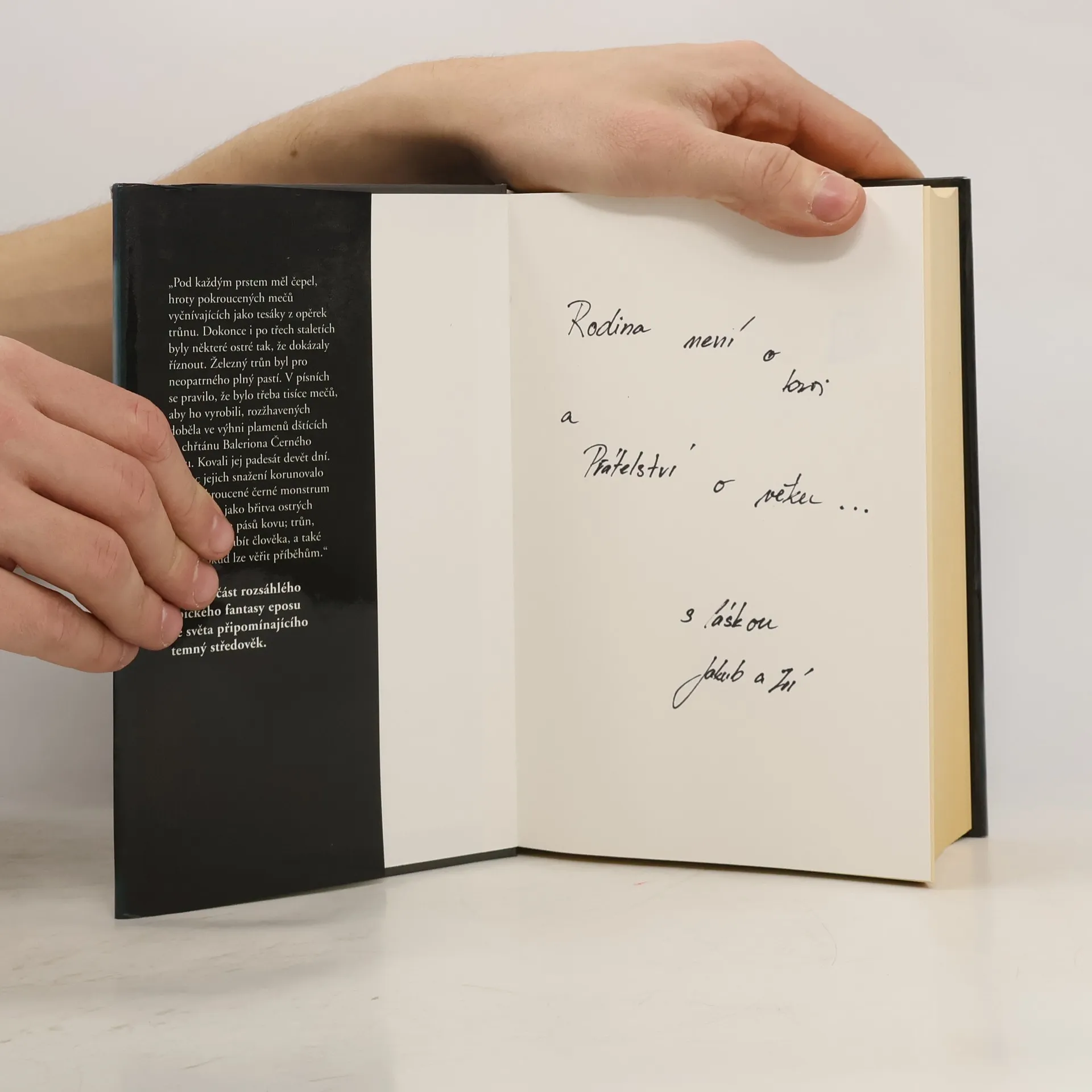 Pod každým prstem měl čepel, hroty pokroucených mečů vyčnívajících jako tesáky z opěrek trůnu. Dokonce i po třech staletích byly některé ostré tak, že dokázaly říznout. Železný trůn byl pro neopatrného plný pastí. V písních se pravilo, že bylo třeba tisíce mečů, aby ho vyrobili, rozžhavených doběla ve výhni plamenů dštících ze chřtánu Baleriona Černého děsu. Kovali jej padesát devět dní. Konec jejich snažení korunovalo toto pokroucené černé monstrum vyrobené z jako břitva ostrých hran, hrotů a pásů kovu; trůn, který mohl zabít člověka, a také zabil, pokud lze věřit příběhům.
