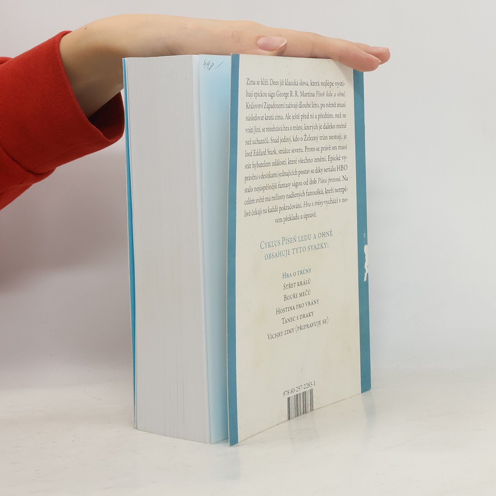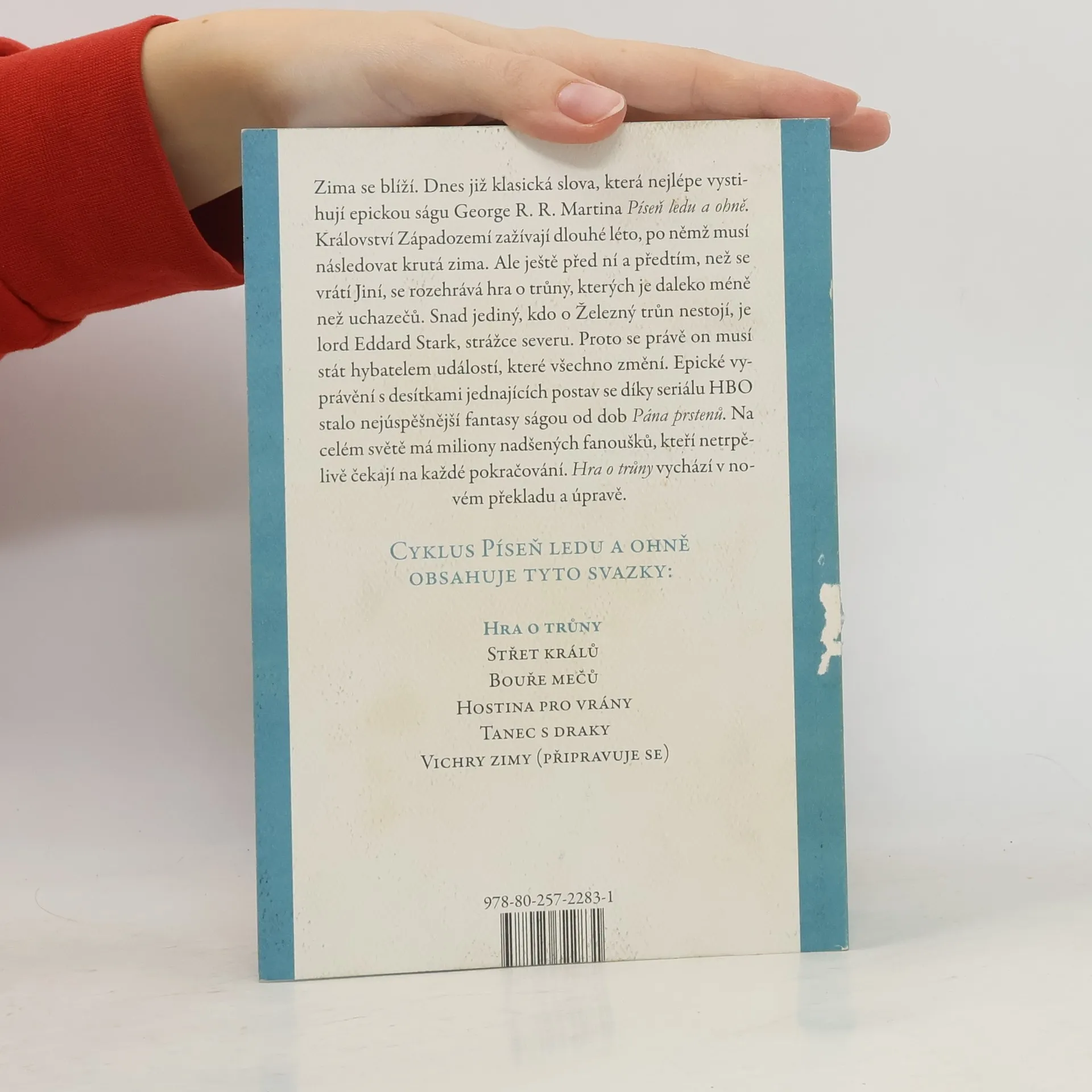 Zima se blíží. Dnes již klasická slova, která nejlépe vystihují epickou ságu George R. R. Martina Píseň ledu a ohně. Království Západozemí zažívají dlouhé léto, po němž musí následovat krutá zima. Ale ještě před ní a předtím, než se vrátí Jiní, se rozehrává hra o trůny, kterých je daleko méně než uchazečů. Snad jediný, kdo o Železný trůn nestojí, je lord Eddard Stark, strážce severu. Proto se právě on musí stát hybatelem událostí, které všechno změní. Epické vyprávění s desítkami postav se díky seriálu HBO stalo nejúspěšnější fantasy ságou od dob Pána prstenů. Na celém světě má miliony nadšených fanoušků, kteří netrpělivě čekají na každé pokračování. Hra o trůny vychází česky v novém překladu a úpravě.
