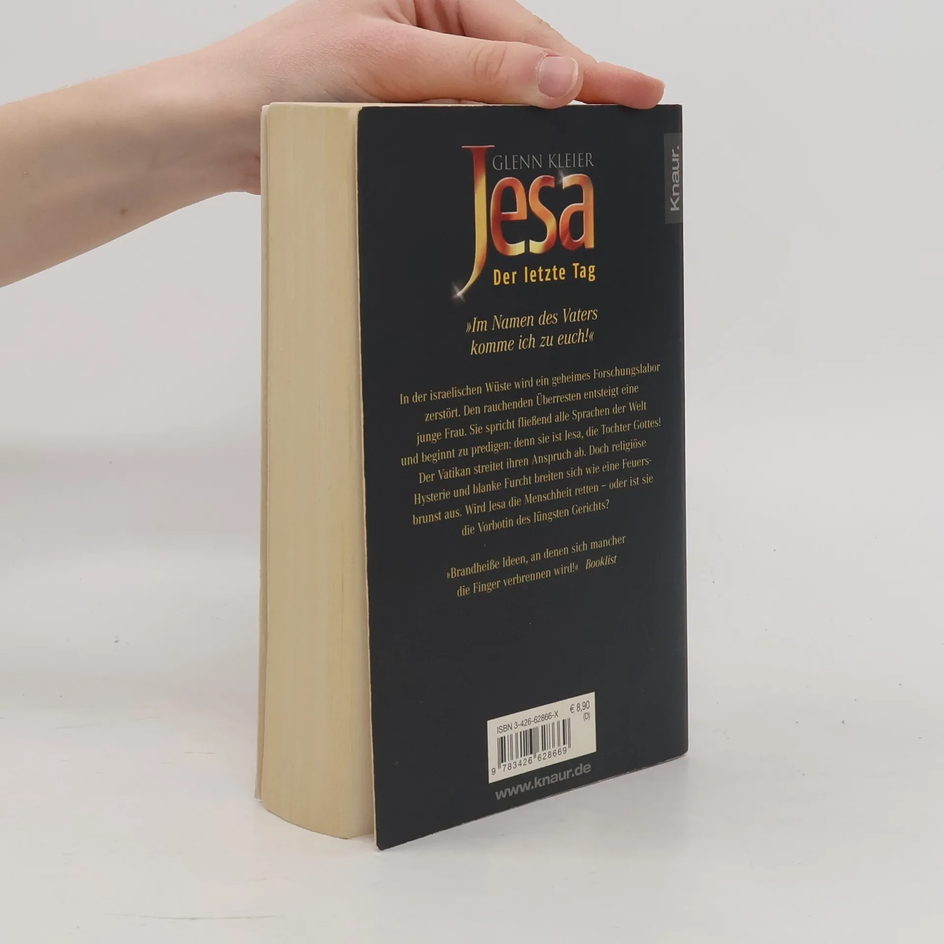 In der israelischen Wüste wird ein geheimes Forschungslabor zerstört. Aus den rauchenden Überresten entsteigt eine junge Frau. Sie spricht fließend alle Sprachen der Welt und beginnt zu predigen: denn sie ist Jesa, die Tochter Gottes! Der Vatikan streitet ihren Anspruch ab. Doch religiöse Hysterie und blanke Furcht breiten sich wie eine Feuersbrust auf der ganzen Welt aus. Wird Jesa die Menschheit retten - oder ist sie die Vorbotin des Jüngsten Gerichts?»In diesem Buch gibt es so viele brandheiße Ideen, dass sich mancher Leser die Finger verbrennen wird!« Booklist