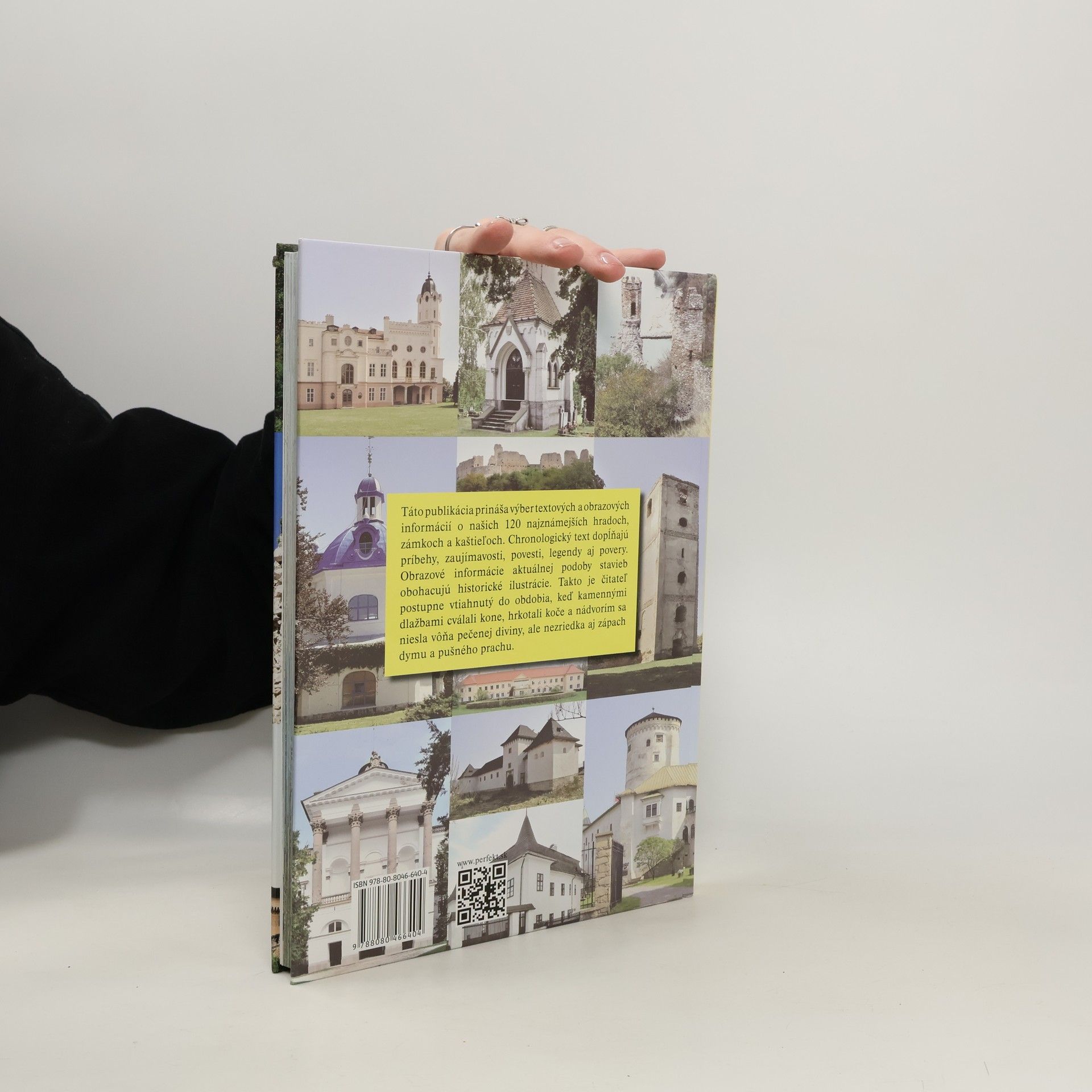 Veľká reprezentatívna publikácia o 120 hradoch, zámkoch a kaštieľoch Slovenska zo všetkých častí našej krajiny. Obsahuje rozsiahly fotografický aparát monumentálnych stavieb, najväčších klenotov ich interiérov, obrazov a ďalších umeleckých artefaktov. Každé veľké i malé mesto Slovenska sa môže dozvedieť o historických reáliách, ktoré sú späté s jeho minulosťou, o udalostiach, ktoré sa odohrali na tomto území, ale i o osudoch hradov, zámkov a kaštieľov a ich majiteľov. Čitateľ sa dozvie o šľachtických rodoch, ktoré žili na našom území, ale aj o súčasnom stave architektonických pamiatok a ich činnosti. Zároveň autor predkladá povesti, legendy a zaujímavosti, ktoré sa viažu k jednotlivej architektúre, kompletne historicky spracováva klenoty slovenskej kultúry, svedectvo dejín. Legendy a povesti o hradoch, zámkoch a kaštieľoch sú späté s príbehmi, ktoré už stáročia zaujímajú mnoho ľudí. Tieto príbehy prilákajú k čítaniu nielen dospelých, ale i mladších čitateľov. Prídu si v nej na svoje milovníci histórie, literatúry, ale aj individuálni bádatelia, deti či rodiny, študenti.