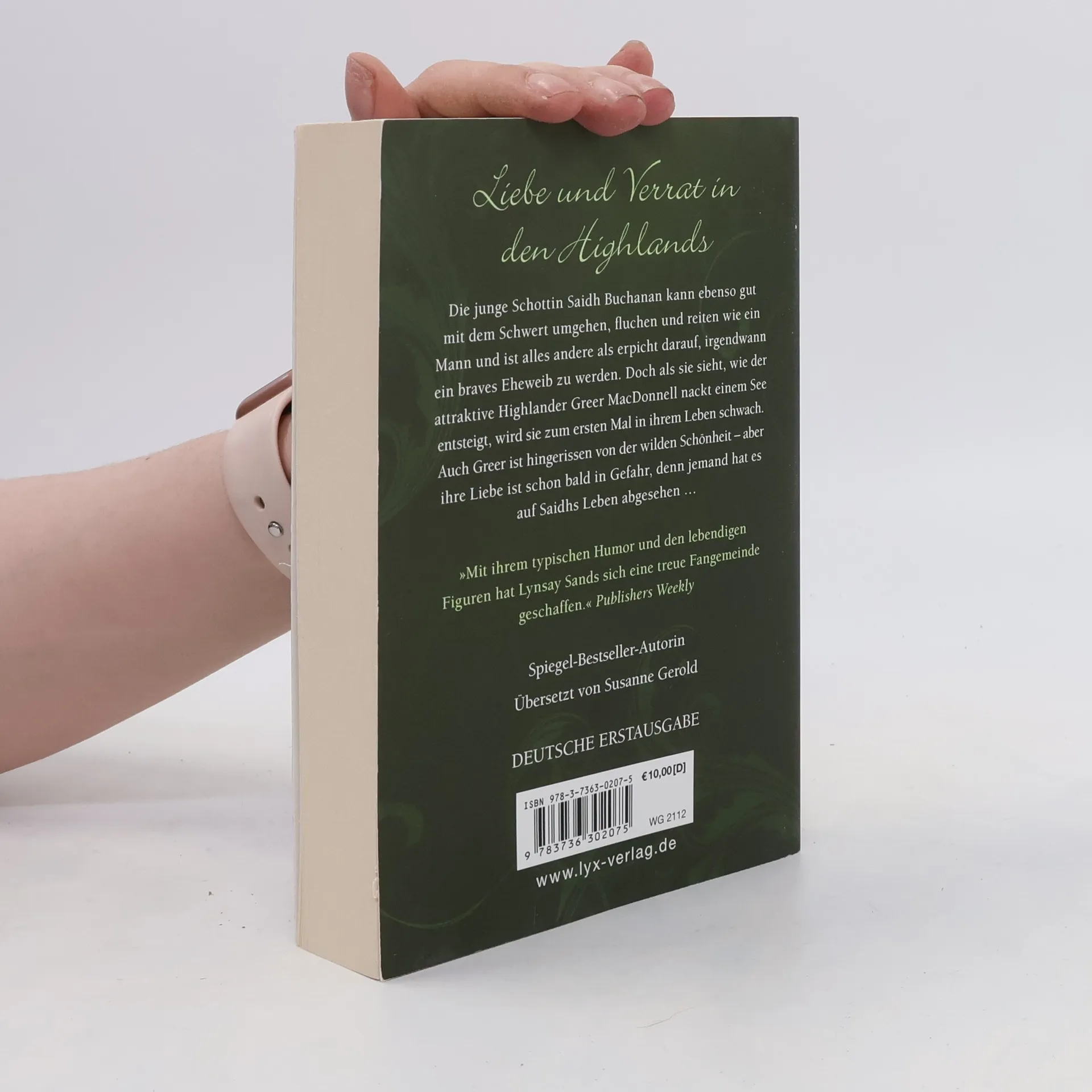 Die selbstbewusste Saidh Buchanan ist mit sieben Brüdern aufgewachsen und kann ebenso gut mit dem Schwert umgehen, fluchen und reiten wie ein Mann. Brav lächeln und den Mund halten gehören eher nicht zu ihren Stärken. So ist sie auch nicht gerade erpicht darauf, irgendwann eines Mannes folgsames Eheweib zu werden, bis sie einen Blick auf den unbekleideten Greer MacDonnell erhascht. Der gut gebaute Highlander lässt sie zum ersten Mal schwach werden und weckt eine Leidenschaft in ihr, wie sie sie bisher noch nicht kannte. Und auch Greer ist völlig fasziniert von der schönen, wenn auch kratzbürstigen Saidh und bereit alles zu tun, um ihr Herz zu erobern.