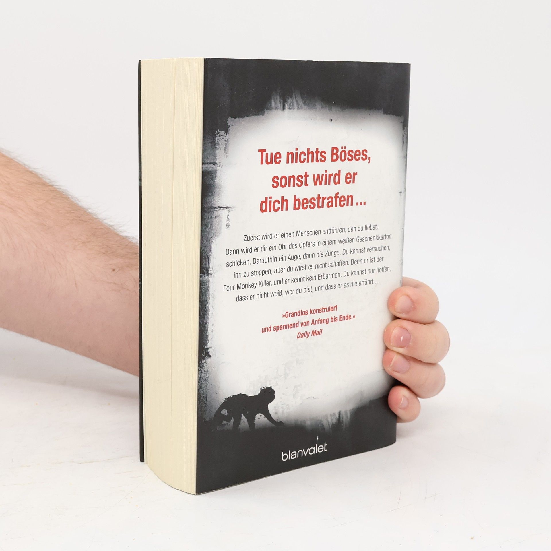5 Jahre, unzählige Opfer und ein Serienkiller, der auch nach seinem Tod nicht ruht … Tue nichts Böses, sonst wird er dich bestrafen. Zuerst wird er einen Menschen entführen, den du liebst. Dann wird er dir ein Ohr des Opfers in einem weißen Geschenkkarton schicken. Daraufhin ein Auge, dann die Zunge. Du kannst versuchen, ihn zu stoppen, aber du wirst es nicht schaffen. Denn er ist der Four Monkey Killer, und er kennt kein Erbarmen. Du kannst nur hoffen, dass er nicht weiß, wer du bist, und dass er es nie erfährt …