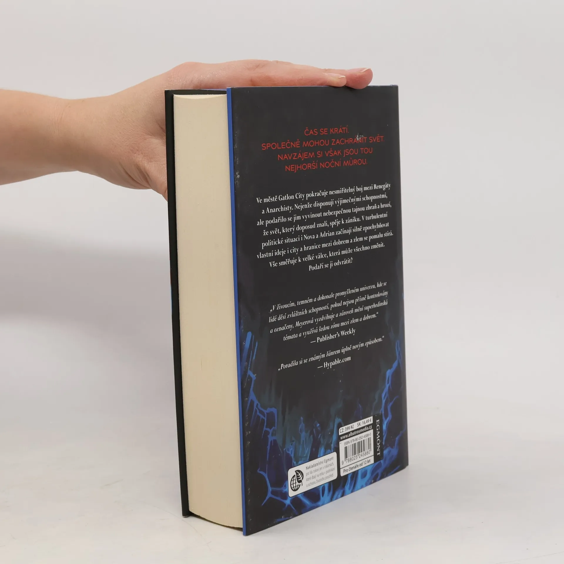Pokračování superhrdinské trilogie Renegáti od oblíbené autorky. Ve městě Galton City pokračuje nesmiřitelný boj mezi Renegáty a Anarchisty. Nejenže disponují výjimečnými schopnostmi, ale podařilo se jim vyvinout nebezpečnou tajnou zbraň a hrozí, že svět, který doposud znali, spěje k zániku. V turbulentní politické situaci i Nova a Adrian začínají silně zpochybňovat vlastní ideje i city a hranice mezi dobrem a zlem se pomalu stírá. Vše směruje k velké válce, která může všechno změnit. Podaří se ji odvrátit?